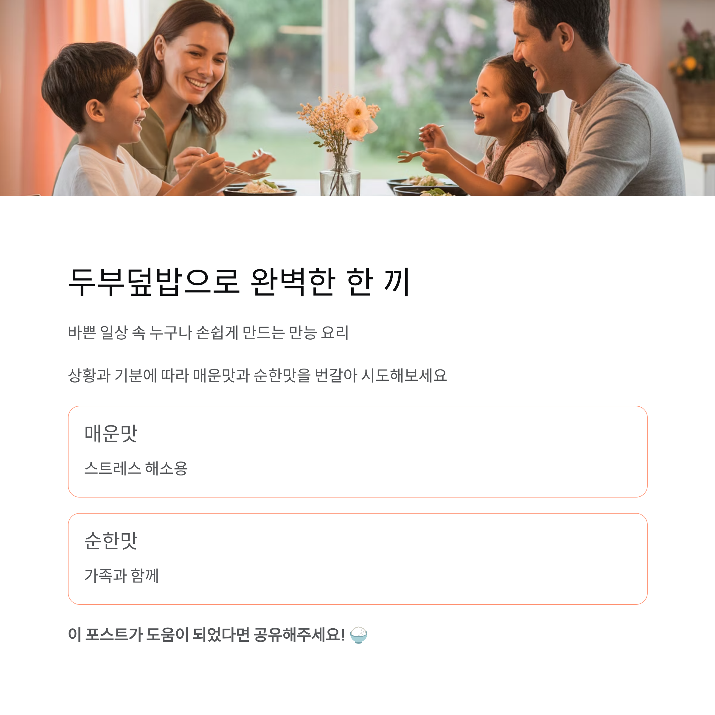 순한 두부덮밥, 온 가족이 함께 즐기는 맛