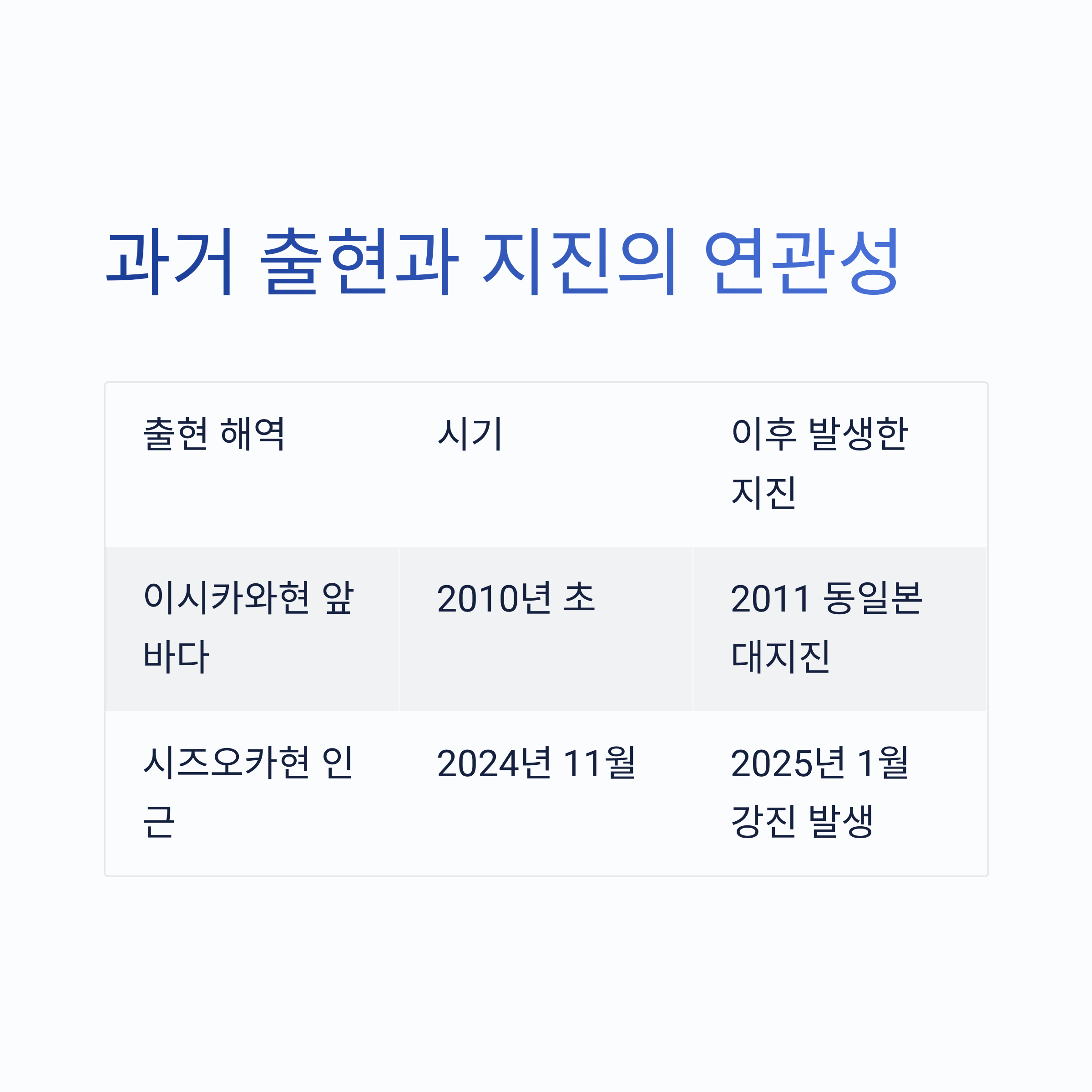 | 시즈오카현 인근 | 2024년 11월 | 2025년 1월 강진 발생 |