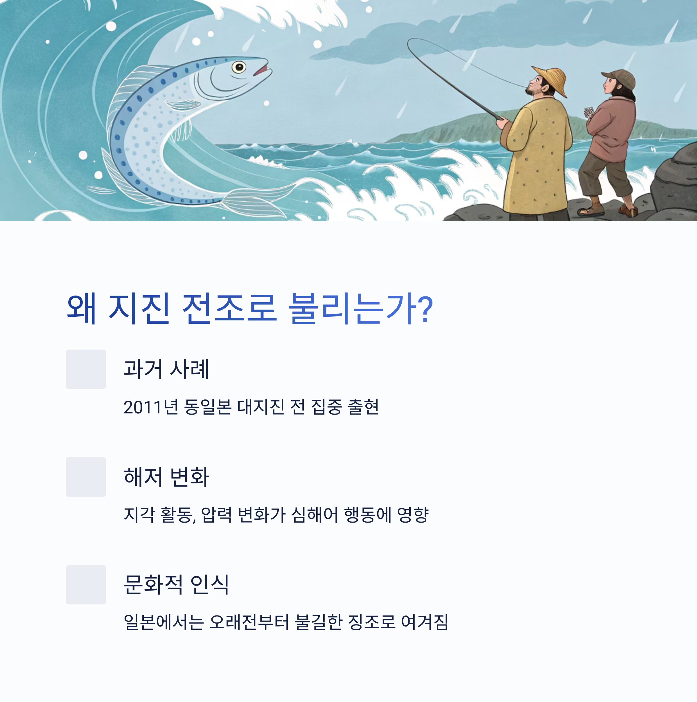 ‘지진의 전조’로 대중 인식이 자리잡았습니다.