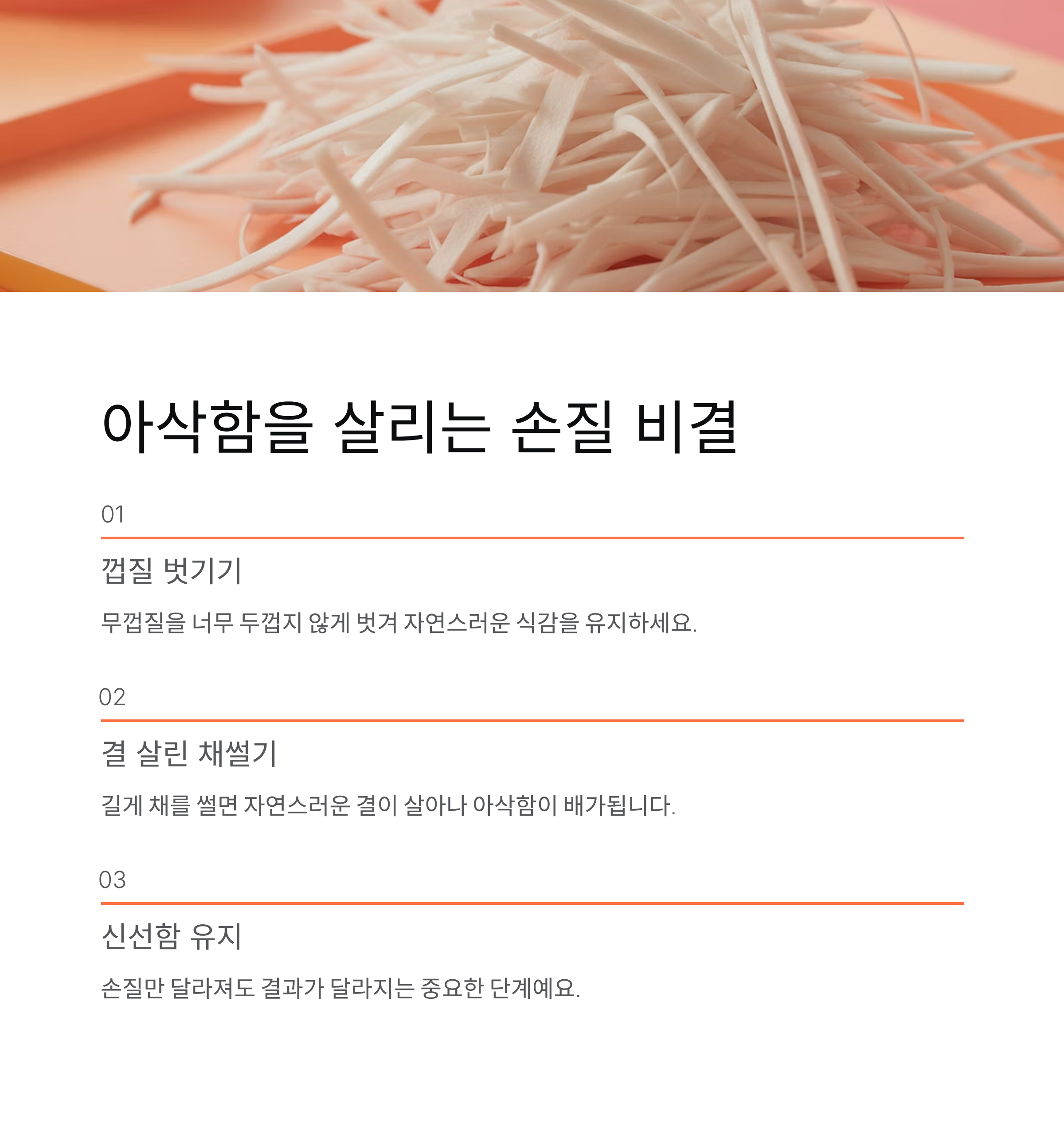 손질 결 살린 채썰기 아삭함 유지