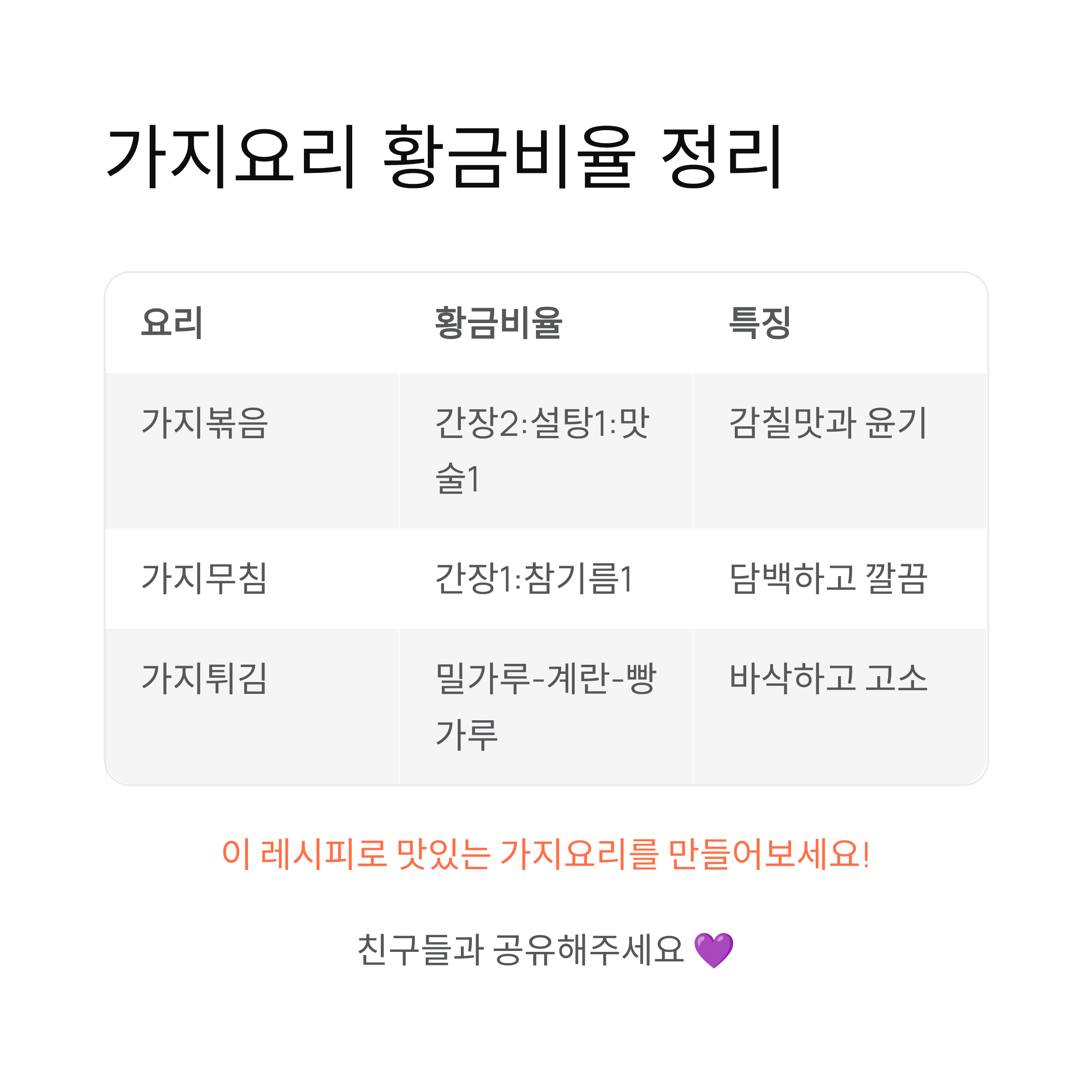 가지요리 황금레시피 요약표