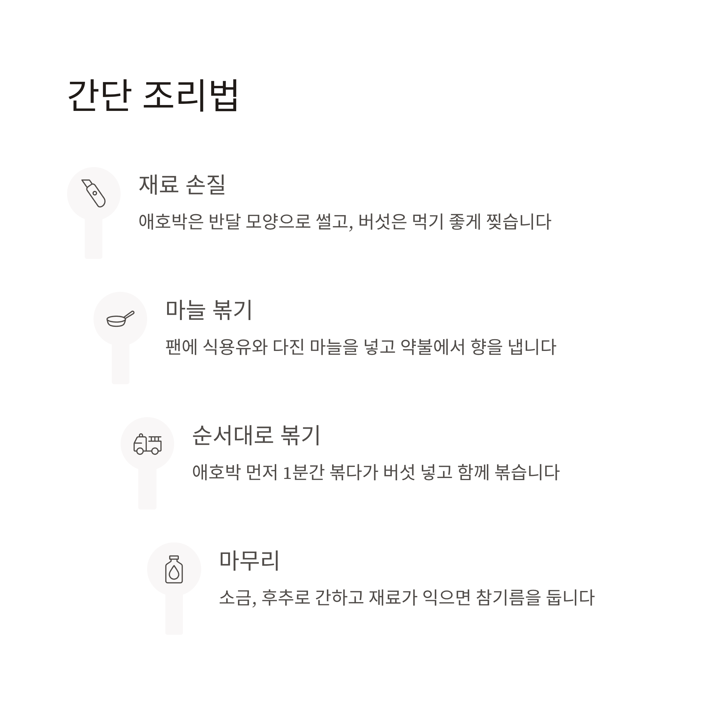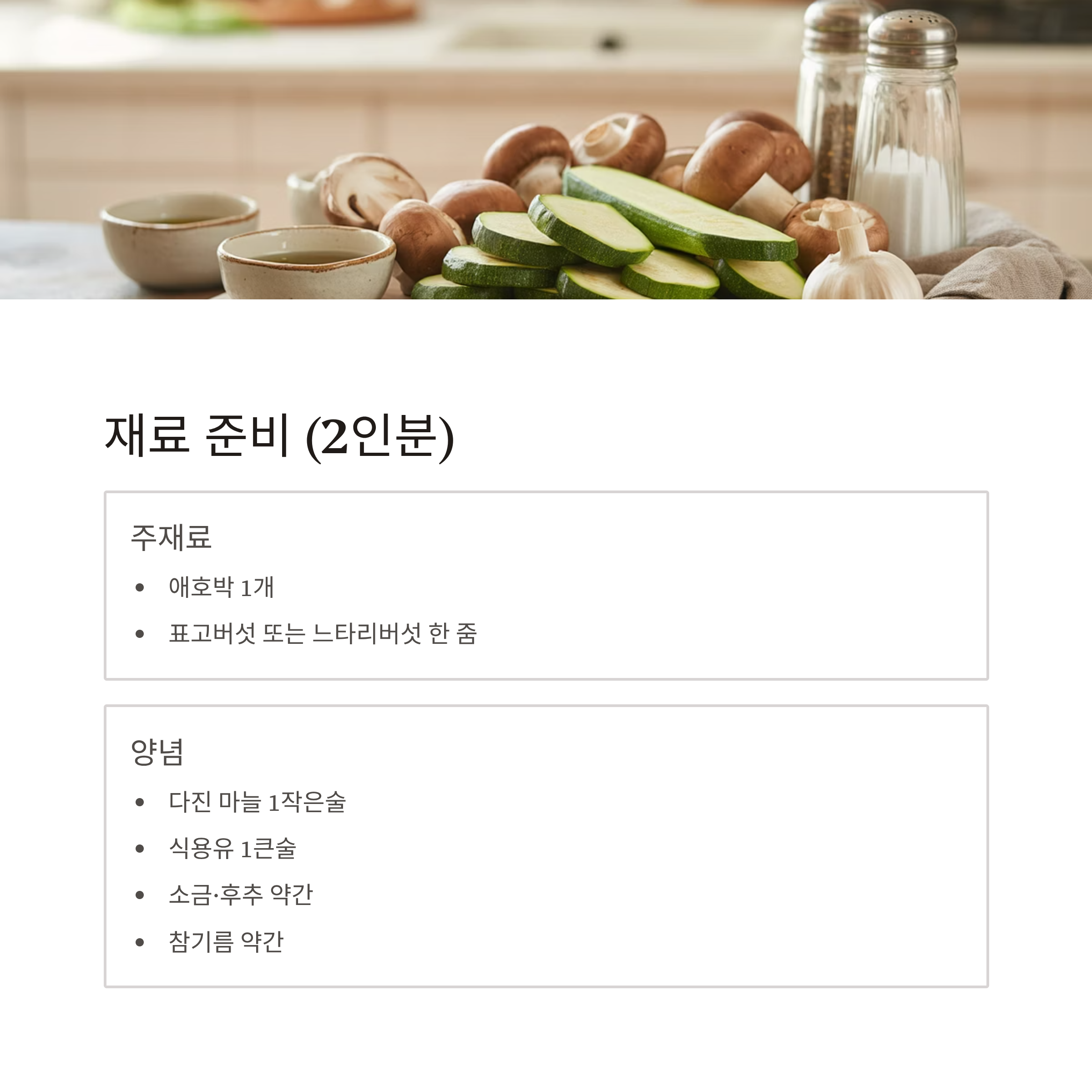 애호박과 버섯은 모두 조리 시간이 짧고, 가벼운 맛이 특징이라