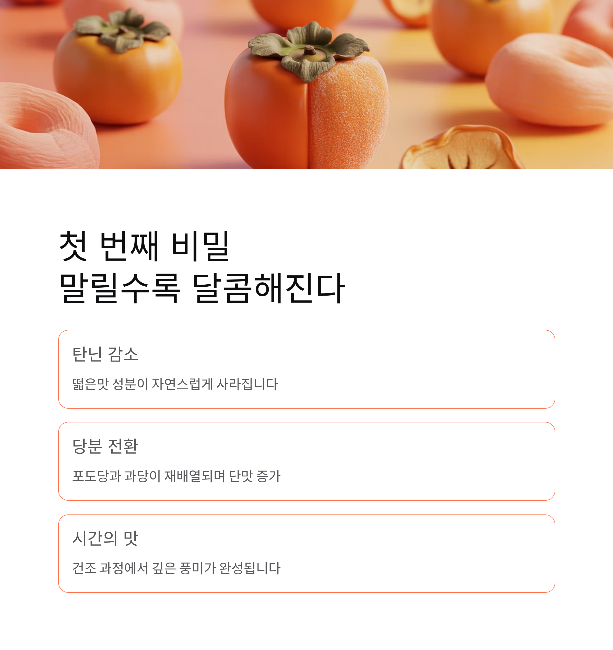 감말랭이는 단순히 달콤해서가 아니라, 자연 그대로의 재료만으로 만들어진 정직한 간식입니다.
