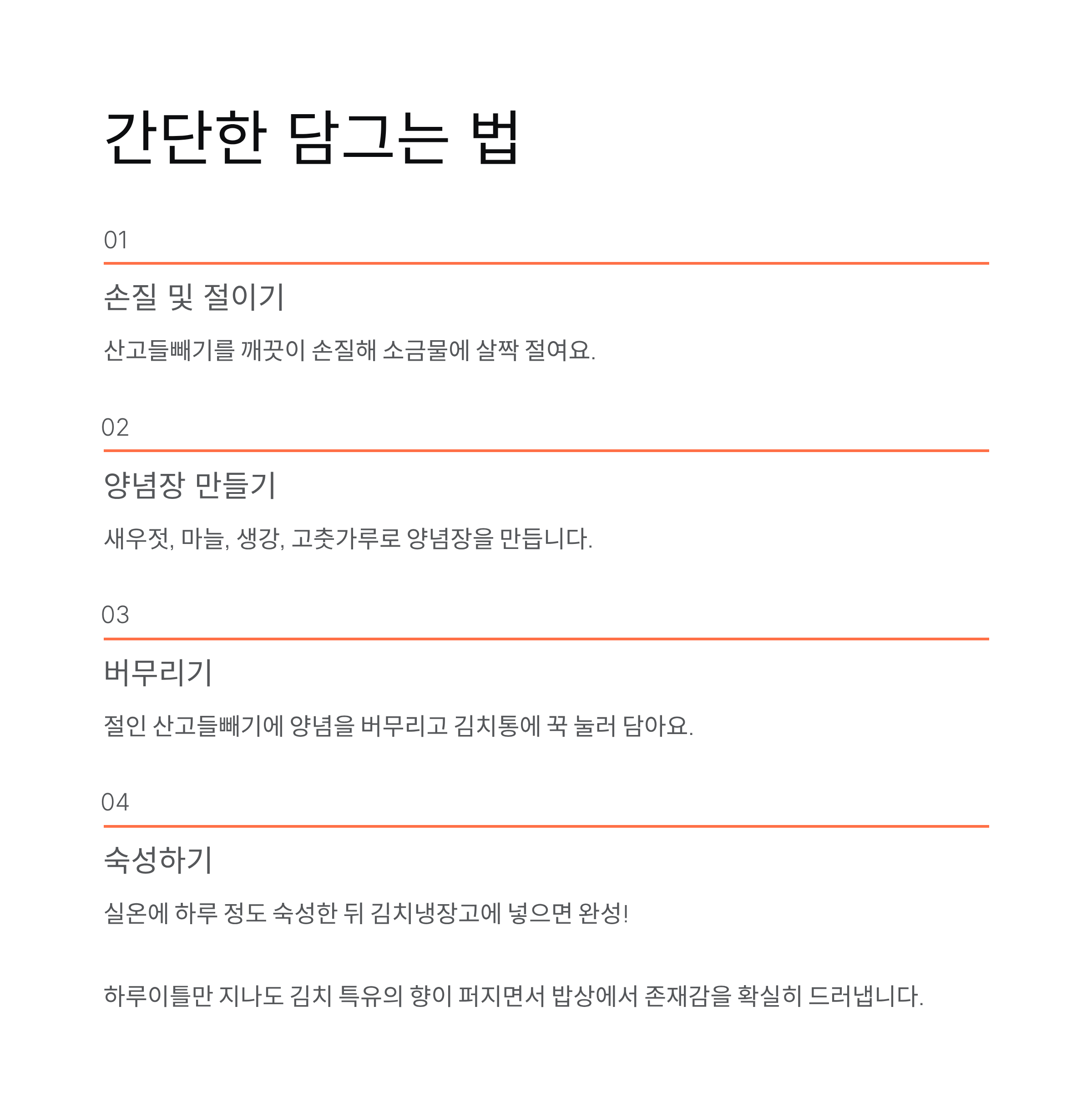 하루이틀만 지나도 김치 특유의 향이 퍼지면서 밥상에서 존재감을 확실히 드러냅니다.