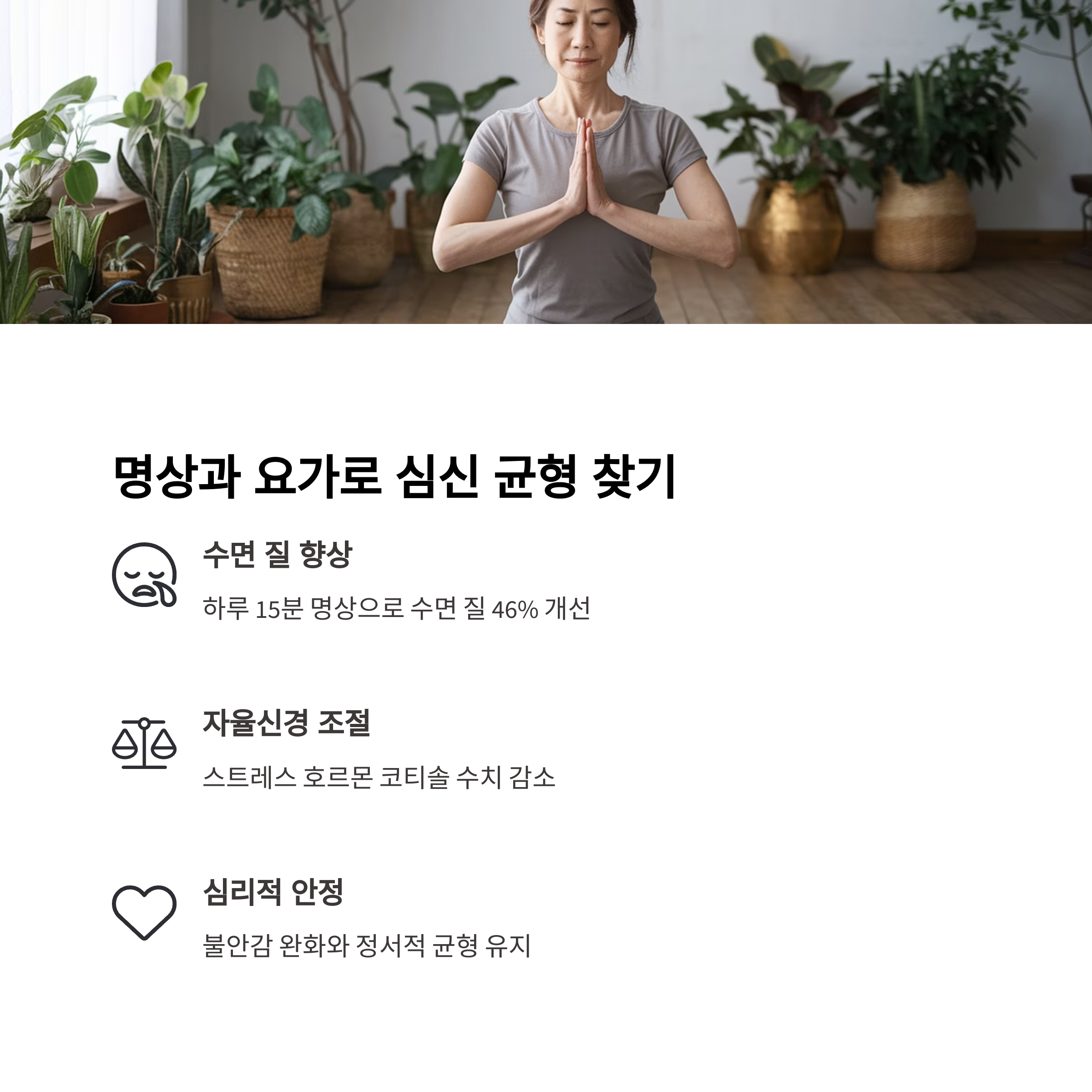 | 호르몬 대체요법 대안으로 주목 | 심리적 긴장 완화에 효과적 | 하루 10분 실천으로 집중력과 에너지 향상 |