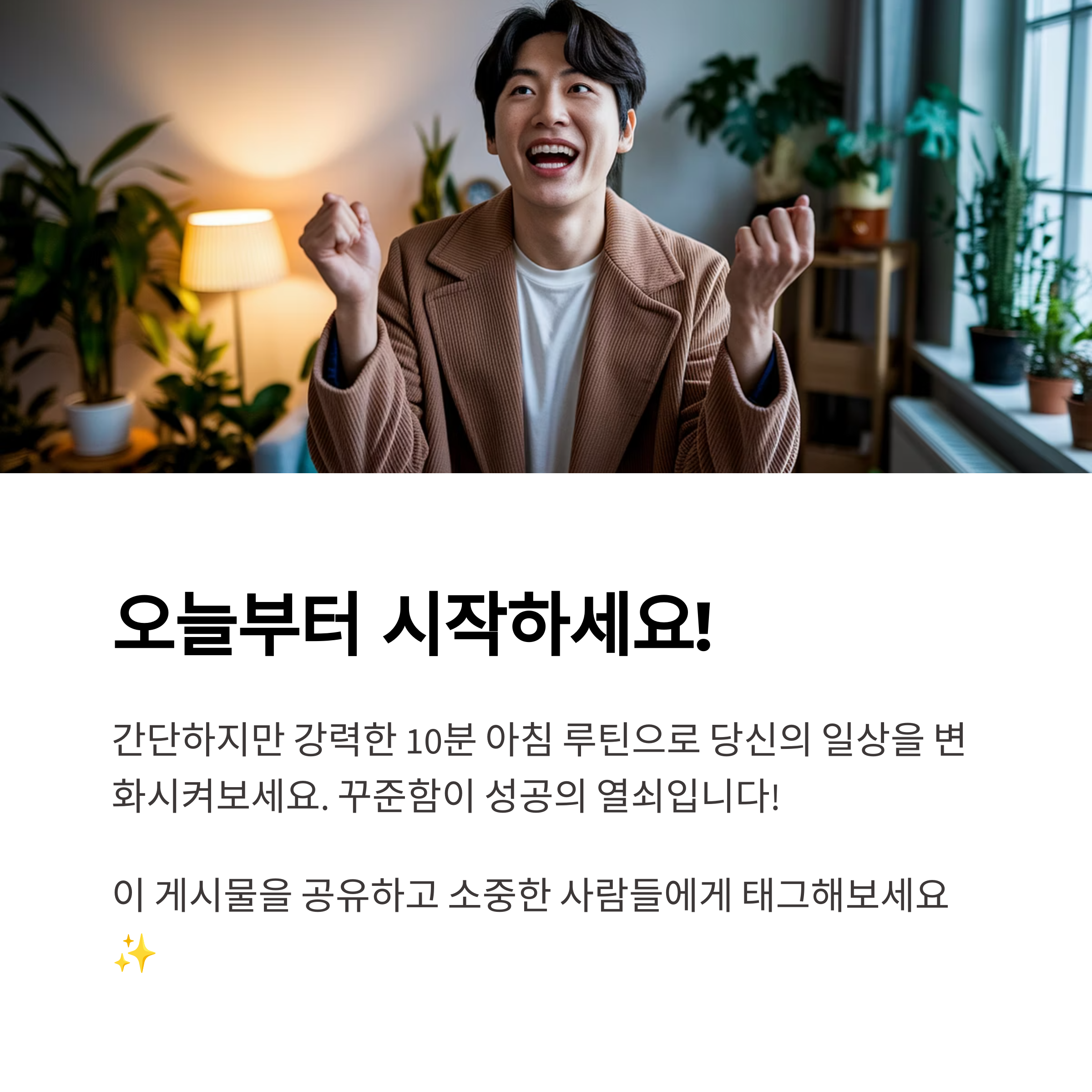 물 한 잔, 명상, 산책 등 여러분이 실천 중인 아침 루틴을 댓글로 공유해주세요. 서로의 습관을 나누며 더 나은 하루를 함께 만들어봐요!