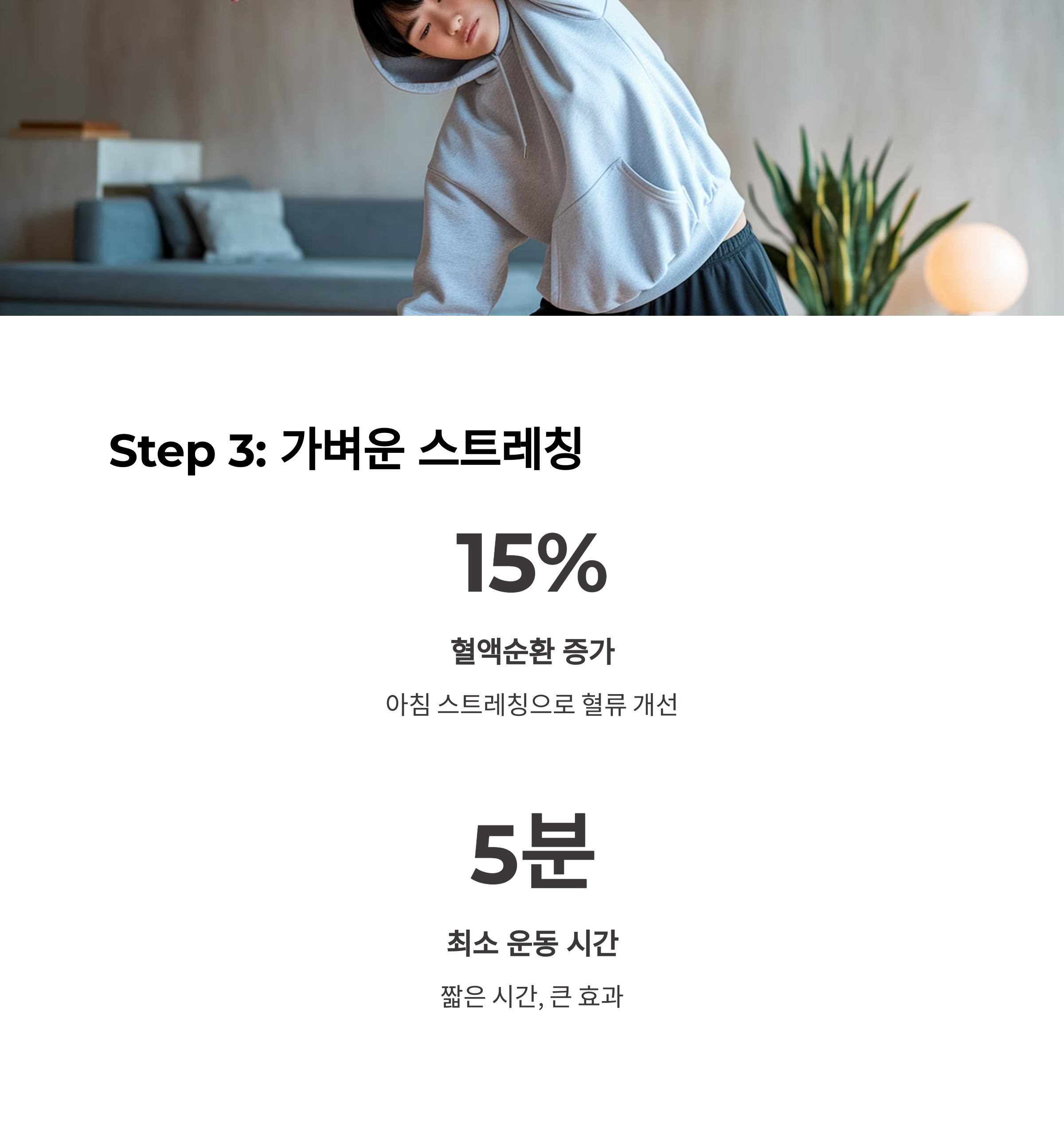 | 하루 계획 정리, 간단한 명상 추가 | 가족과 함께 실천하거나 전날 준비 | 기분 안정, 생활 리듬 정착, 면역력 향상 |
