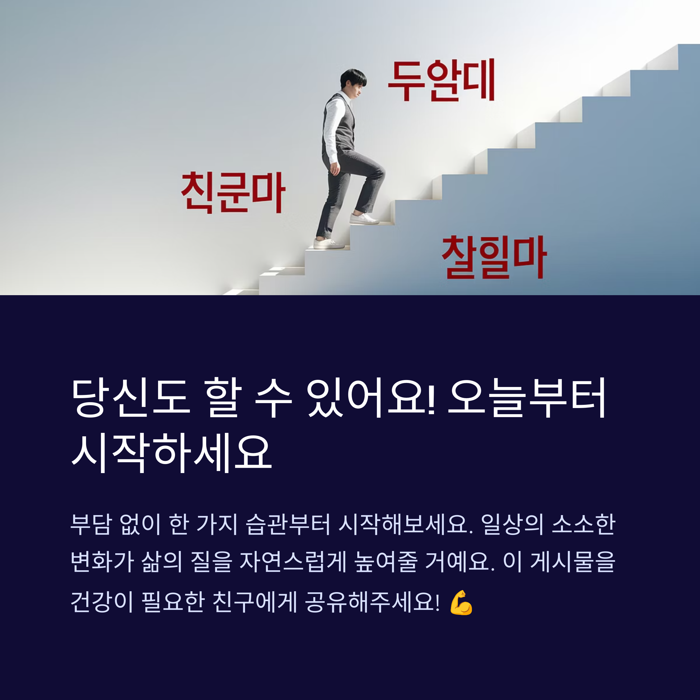 | 습관의 힘 | 매일 반복되는 행동이 건강과 삶의 질을 결정짓습니다. |