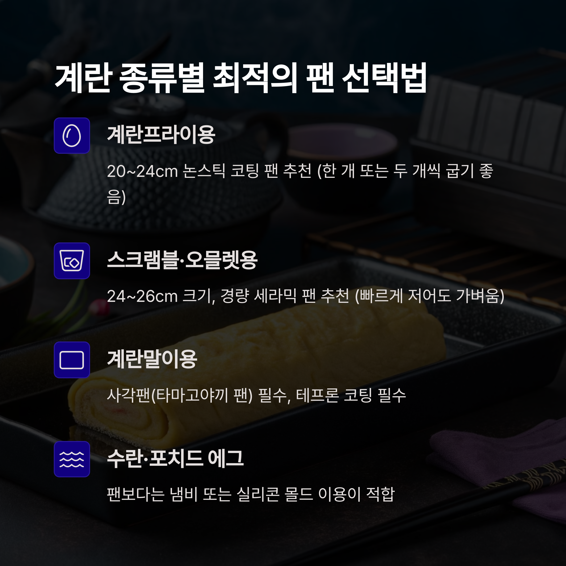 이번 글에서는 계란요리에 최적화된 후라이팬 선택법을 항목별로 총정리했습니다.