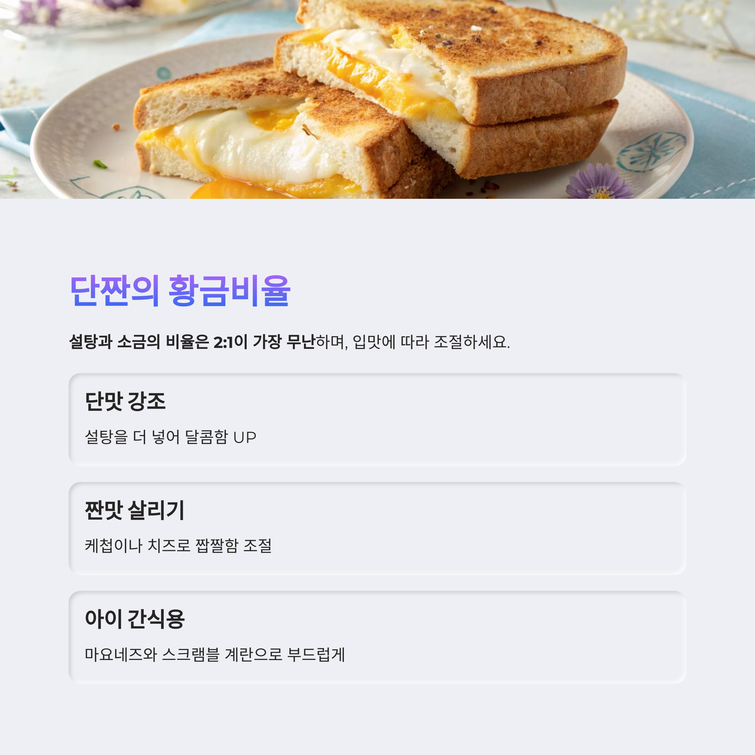단맛을 강조하고 싶다면 설탕을 더, 짠맛을 살리고 싶다면 케첩이나 치즈로 조절하세요.