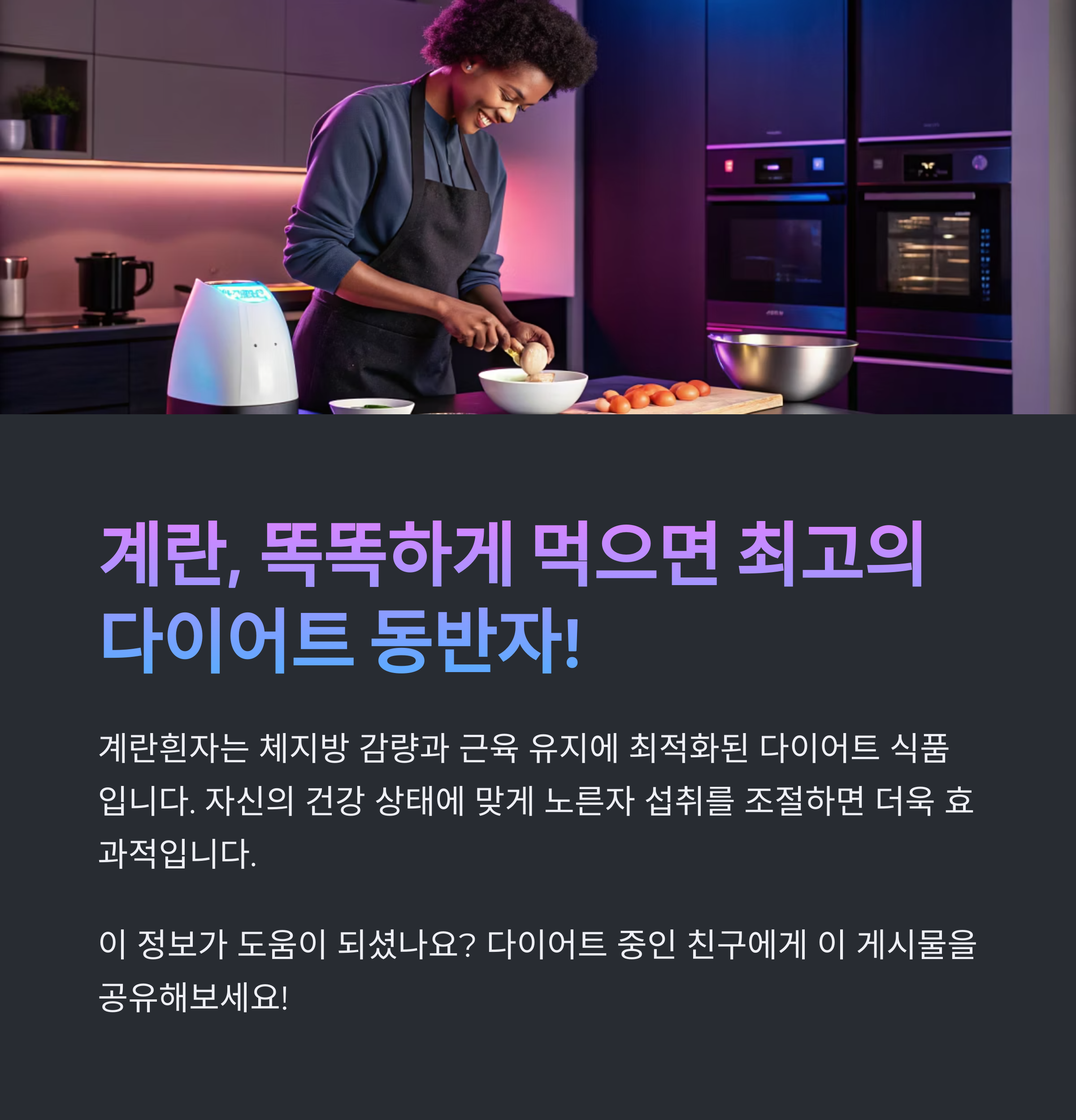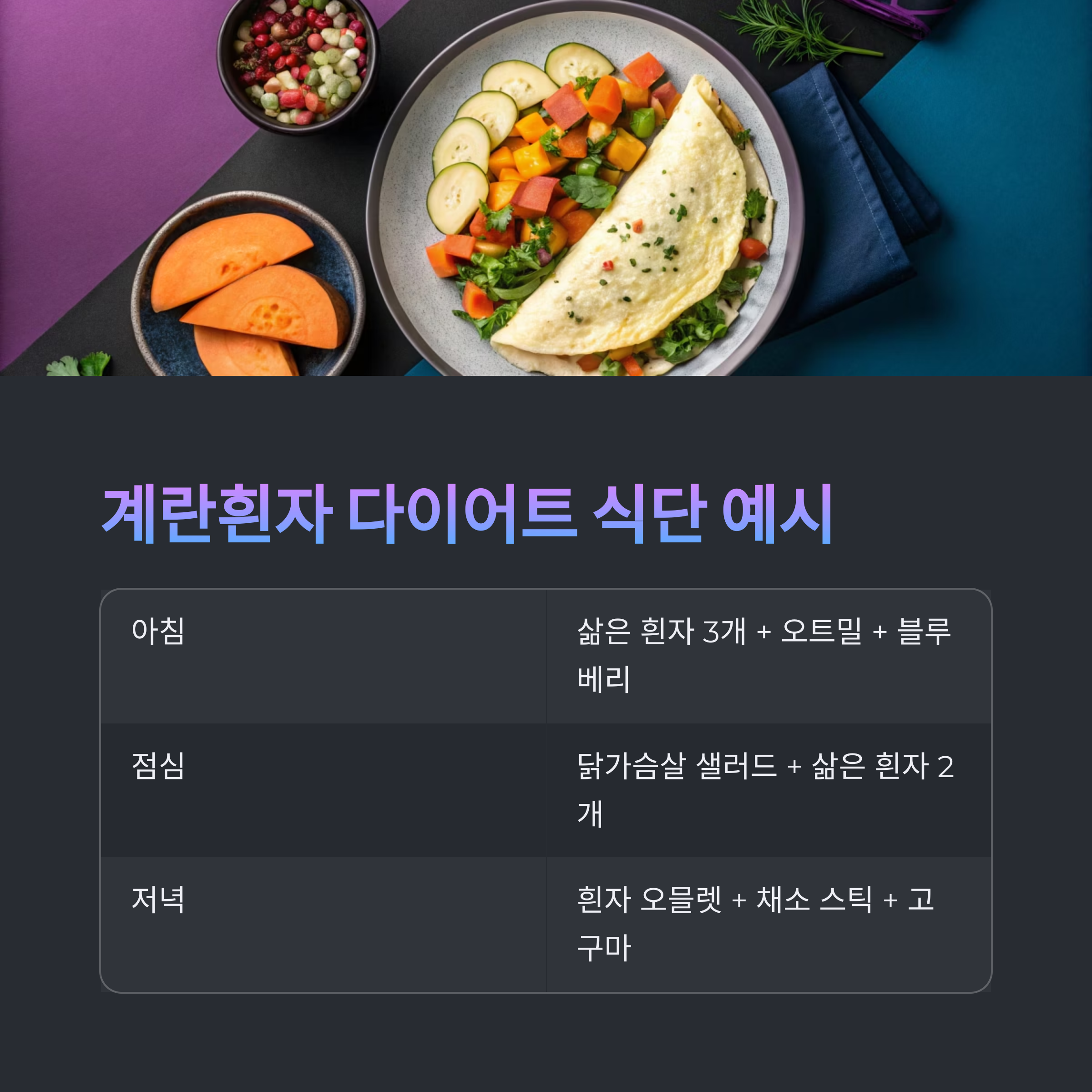 계란흰자는 체지방 감량과 근육 유지에 최적화된 다이어트 단백질원입니다.