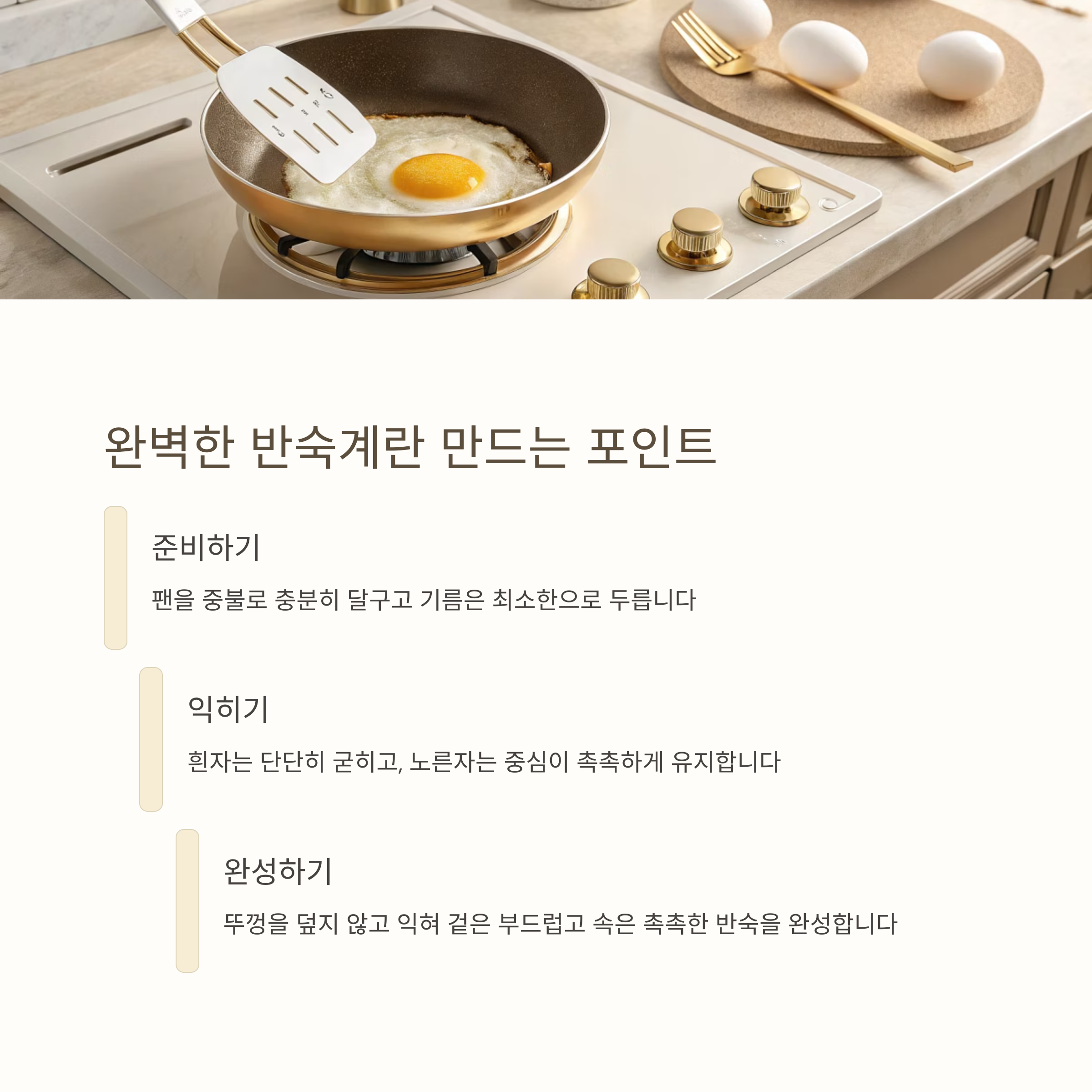 - 뚜껑을 덮지 않고 익히면 겉은 부드럽고 속은 촉촉한 반숙 완성