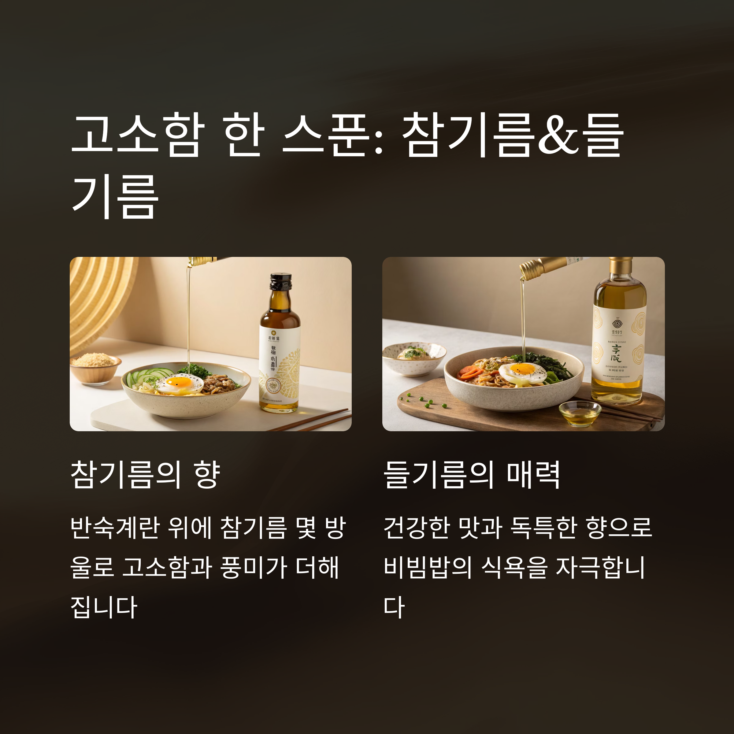 비빔밥 전체의 맛을 감싸고 연결하는 핵심 재료입니다.