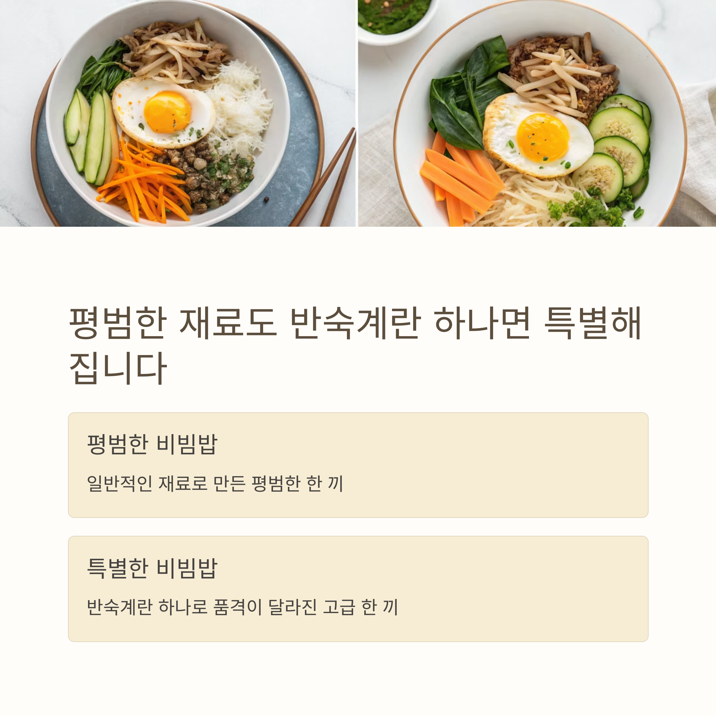 이번 글에서는 계란 반숙 하나로 비빔밥을 업그레이드하는 방법과