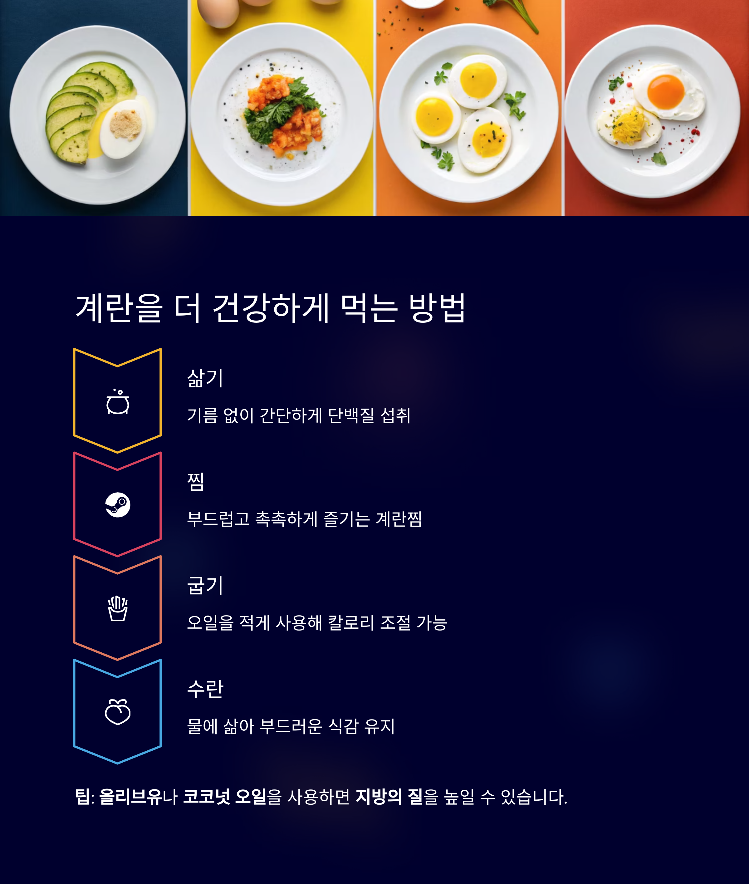 계란을 건강하게 섭취하려면 조리법도 중요합니다.