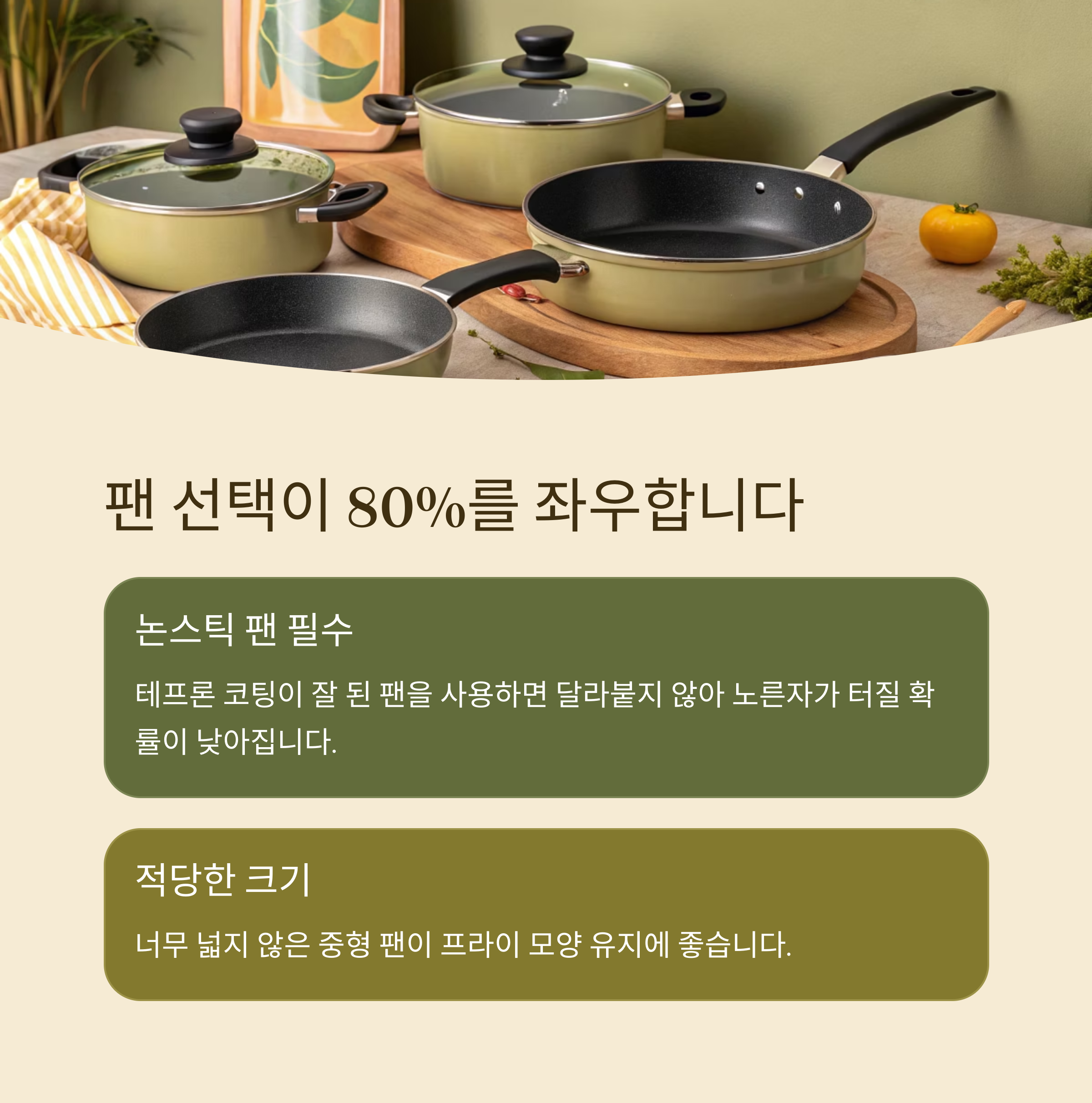 너무 넓지 않은 중형 팬을 선택하면 프라이 모양 유지도 수월합니다.