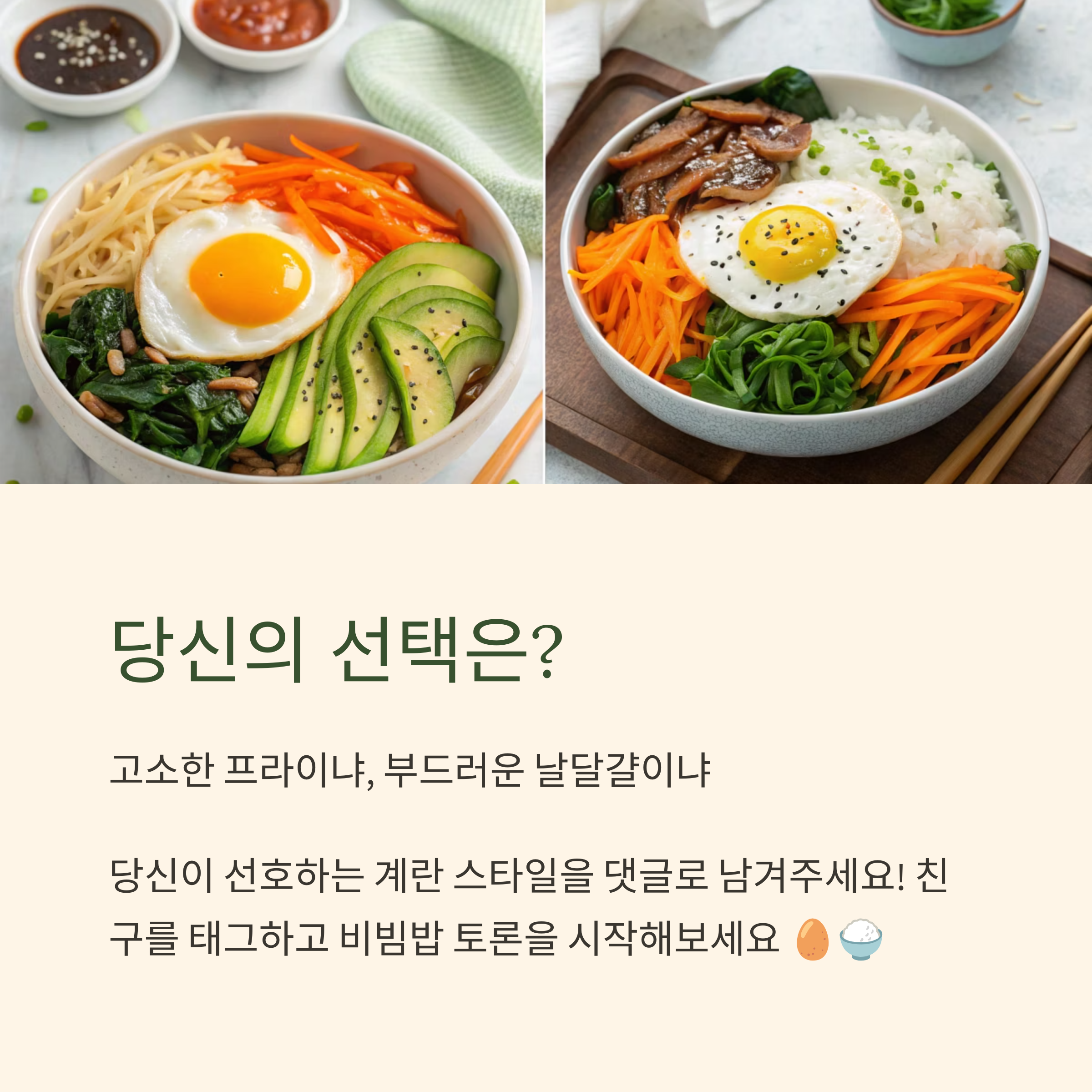 비빔밥을 완성할 때 마지막 터치인 계란 선택, 생각보다 고민되죠.