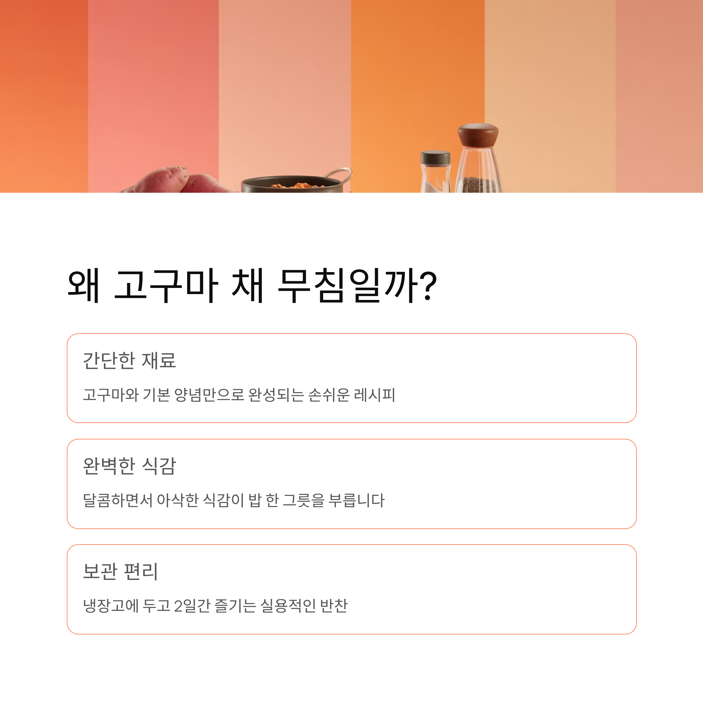 오늘은 누구나 손쉽게 따라 할 수 있는 고구마 채 무침 레시피와 꿀팁을 알려드릴게요.