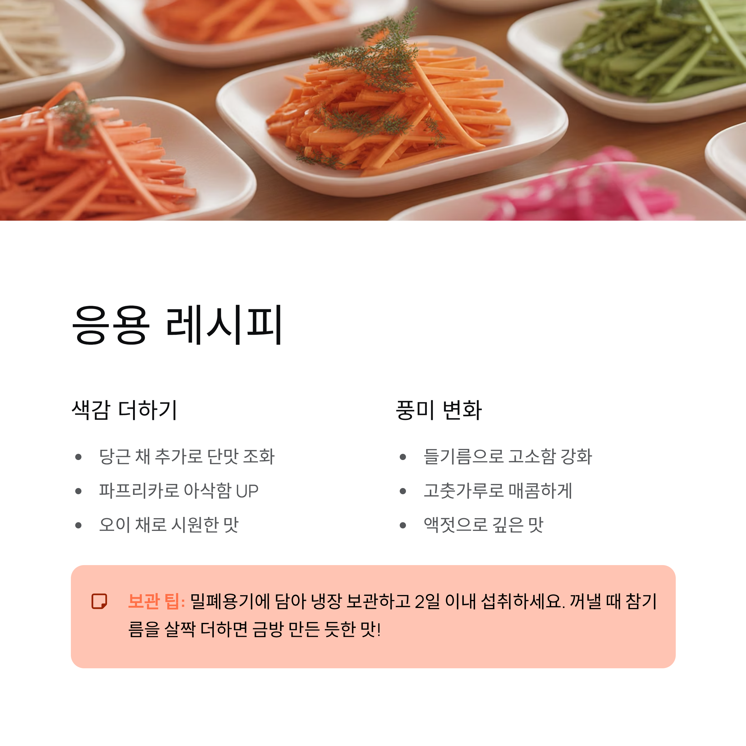 - 당근 채 추가 → 색감이 예쁘고 단맛이 조화로움