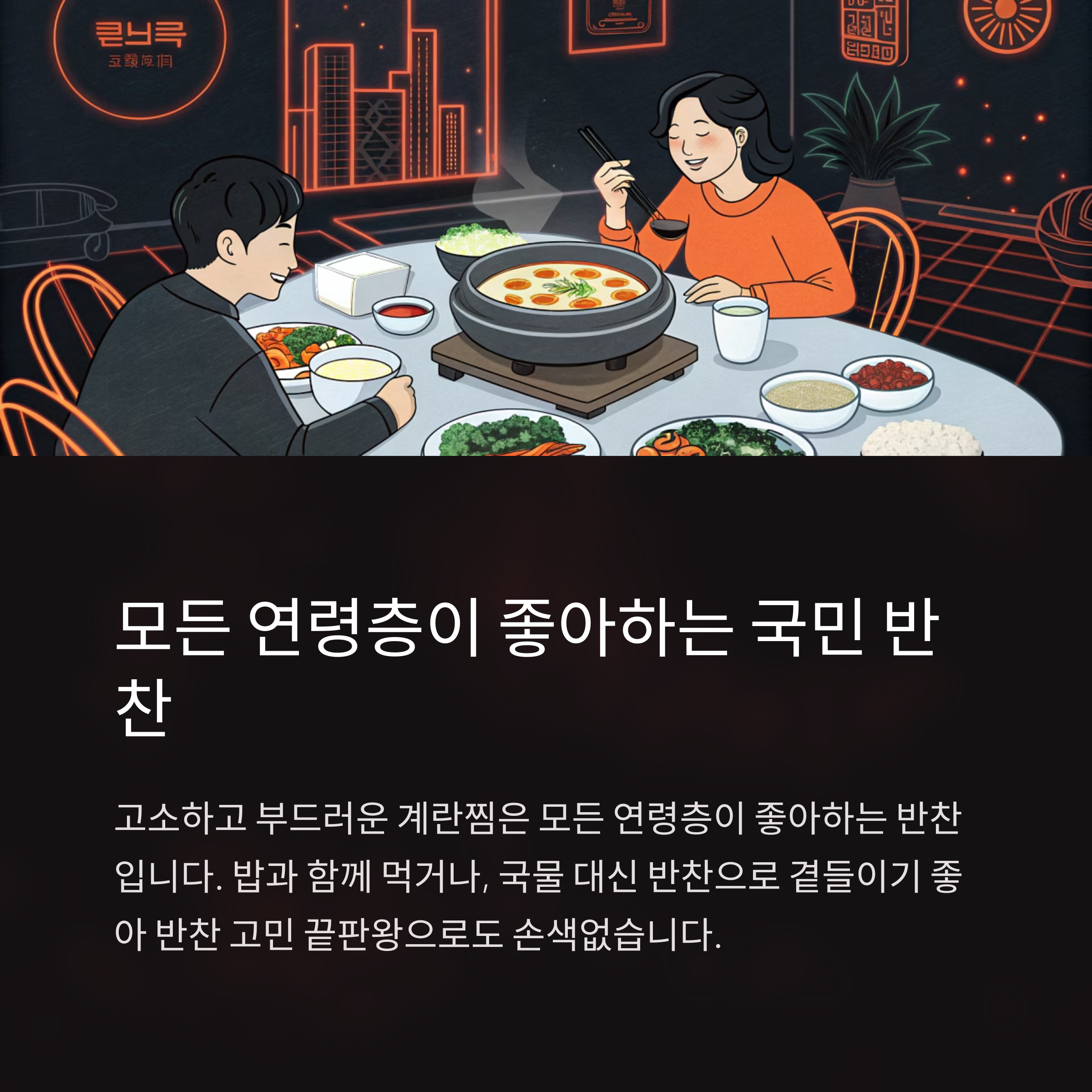 고소하고 부드러운 계란찜은 모든 연령층이 좋아하는 반찬입니다.