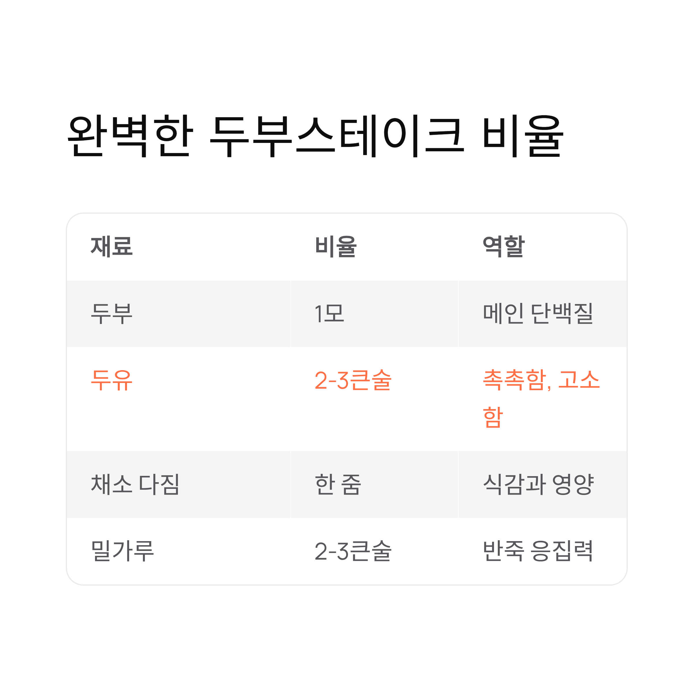 고소하면서도 담백한 두부스테이크는 두유 한 스푼으로 완성도가 달라집니다.