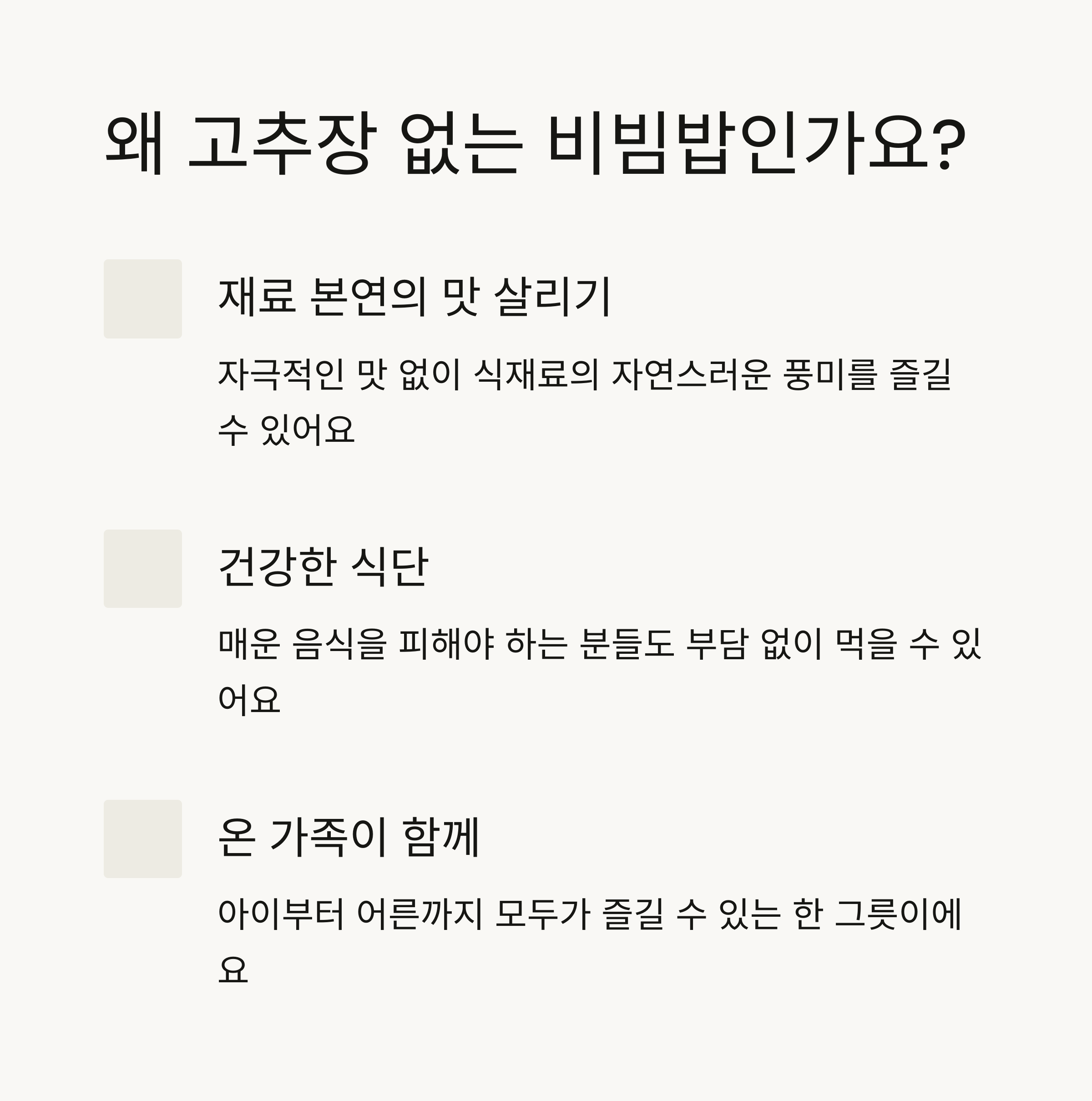 맵지 않고 담백한 비빔밥, 어떻게 만들 수 있을까?