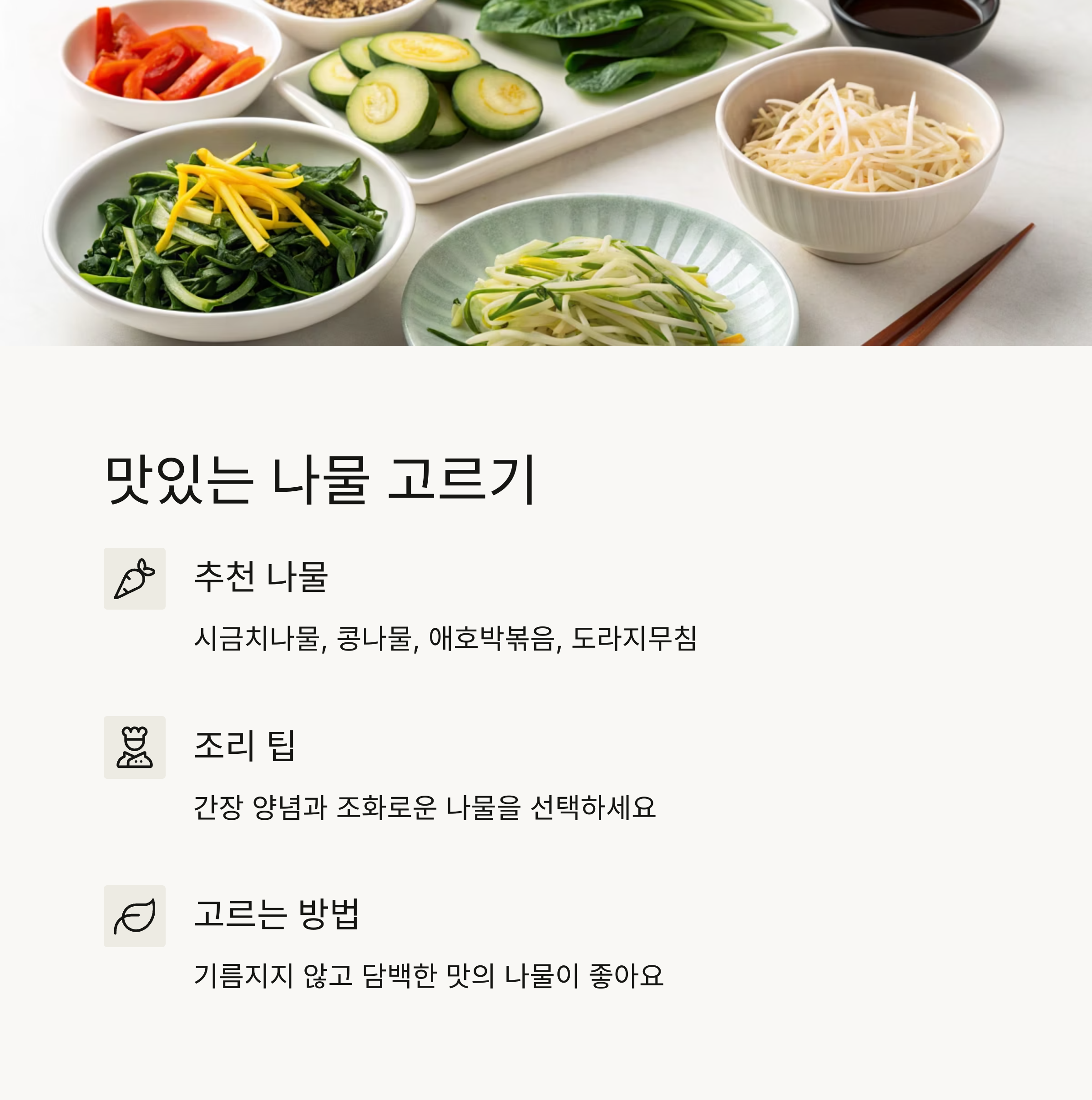 주재료는 나물 중심으로 구성하세요