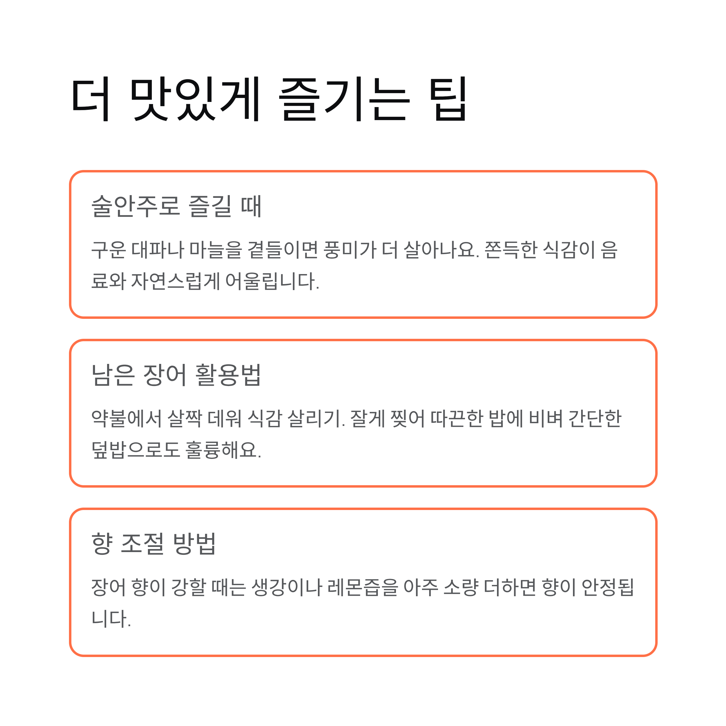 | 단맛 재료 | 한 큰술 | 풍미 조절 |