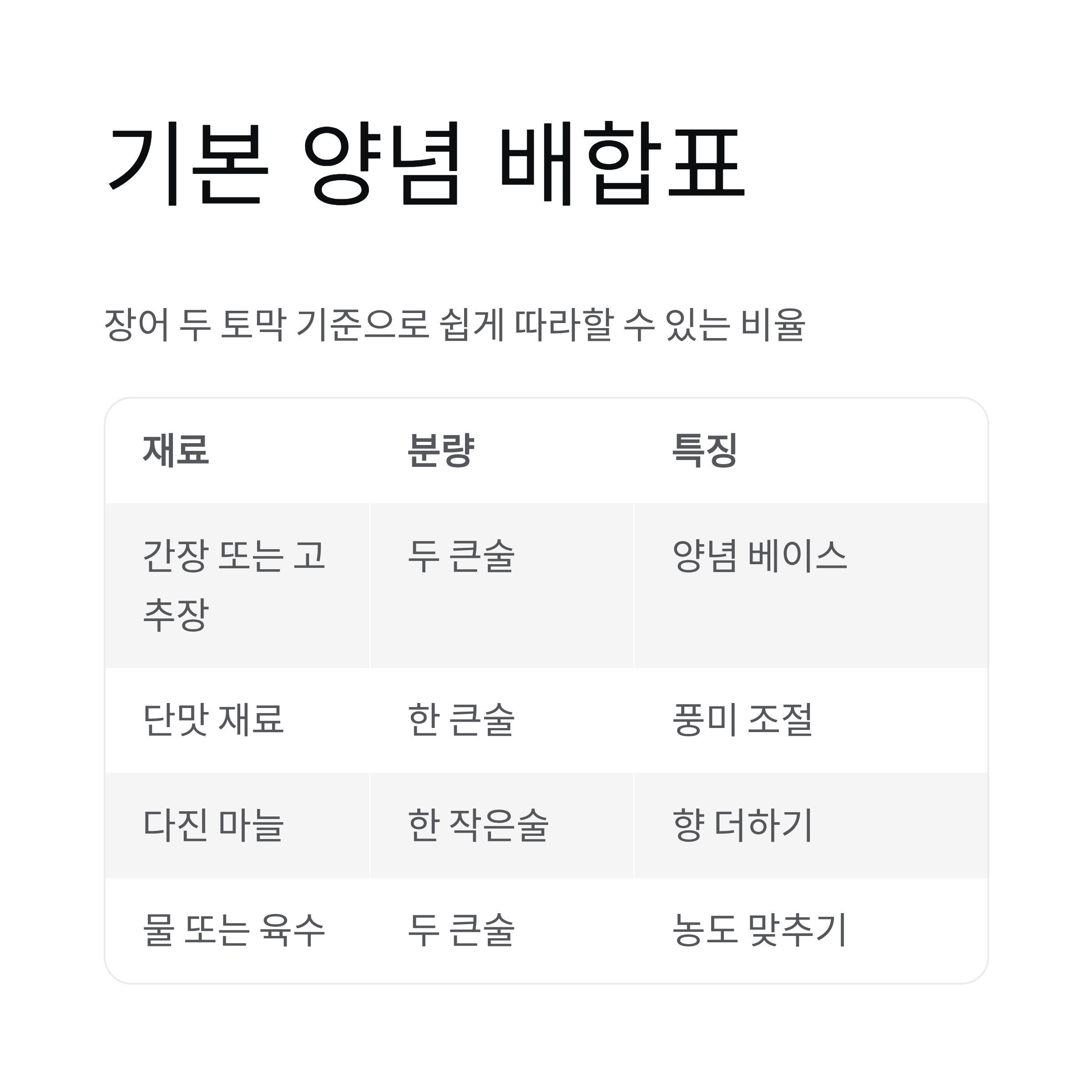 양념 배합을 쉽게 보고 따라할 수 있는 정리표