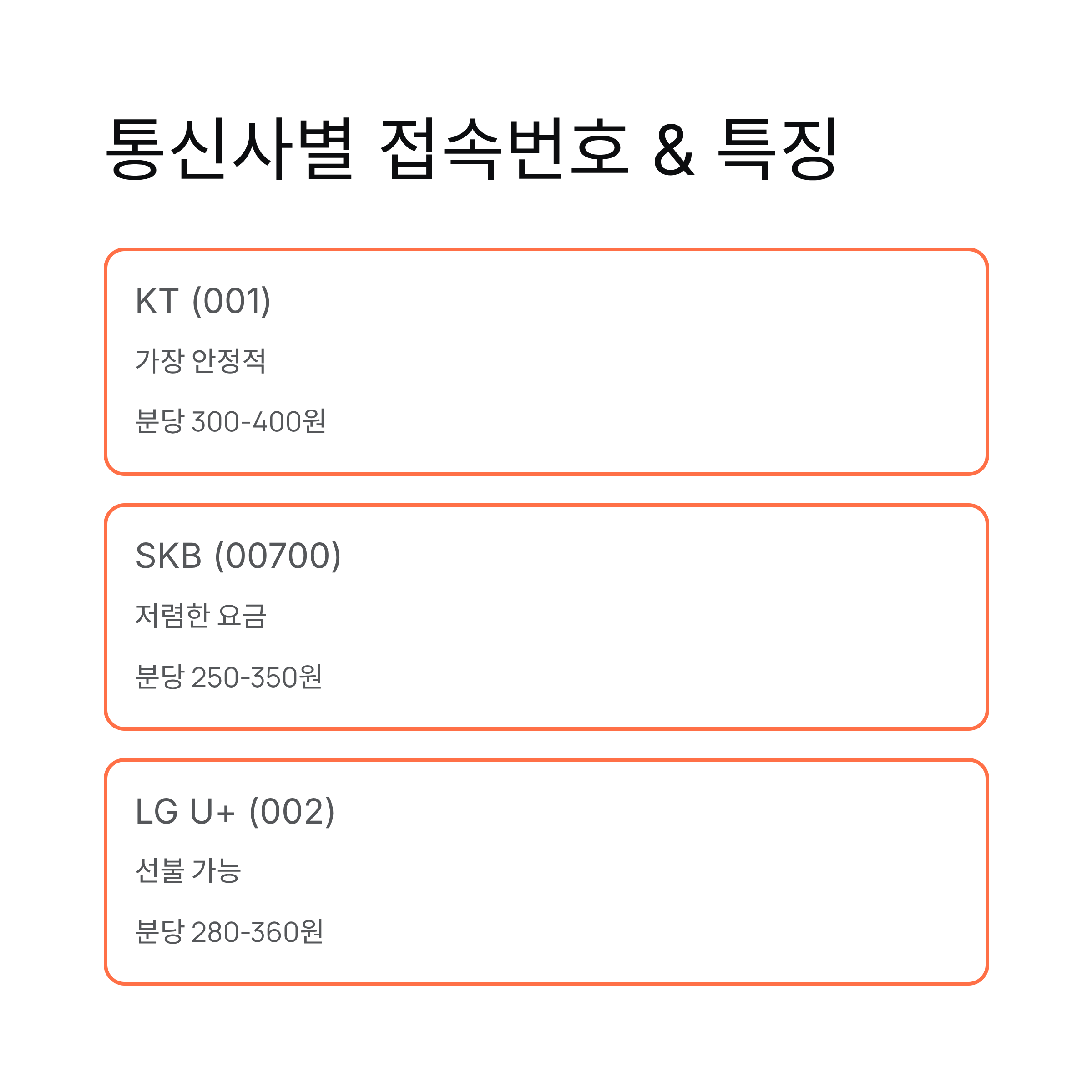- 통신사별 요금 다름 → 미리 확인하고 접속번호 선택