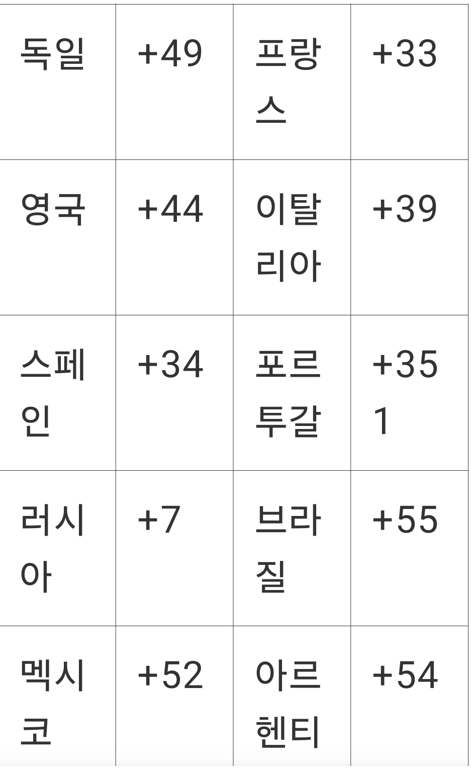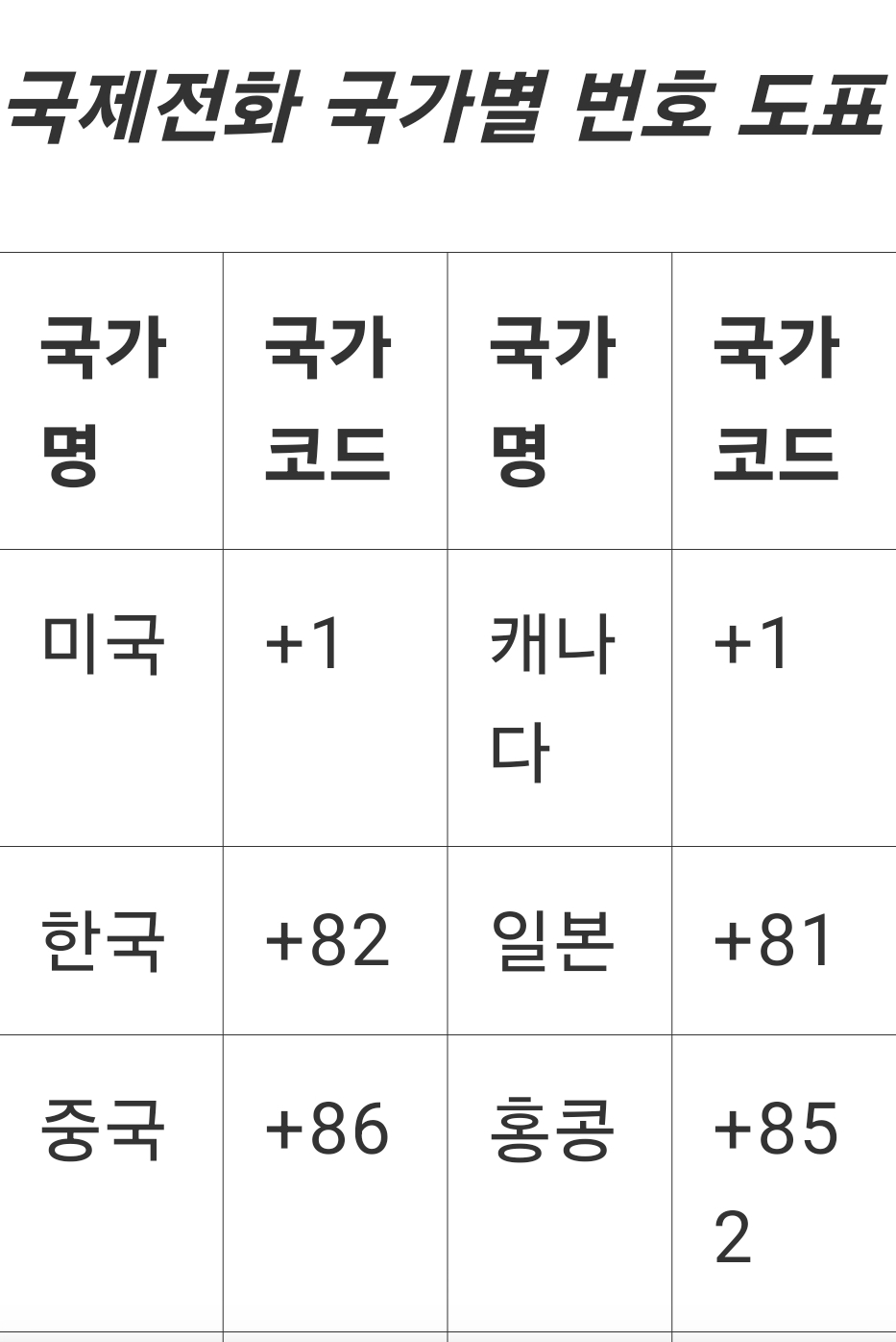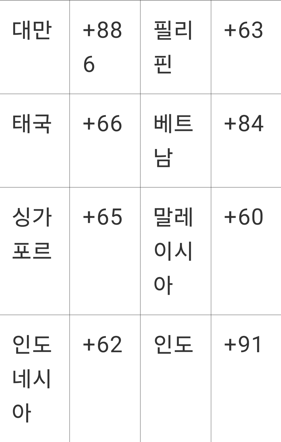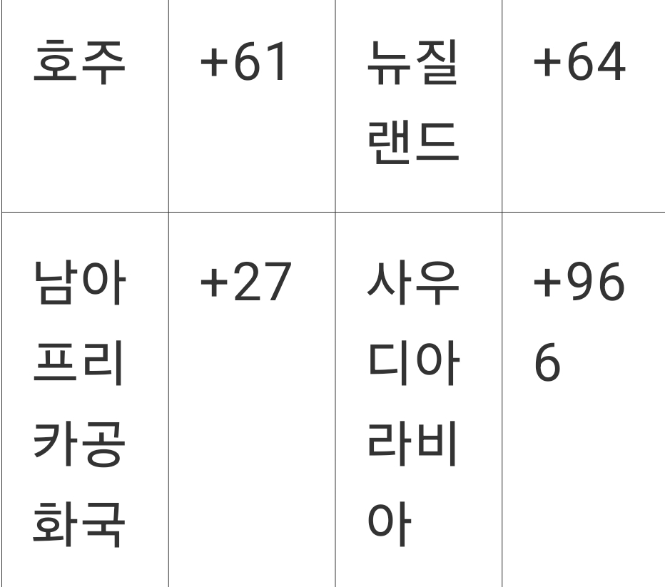 국제전화 번호별 도표