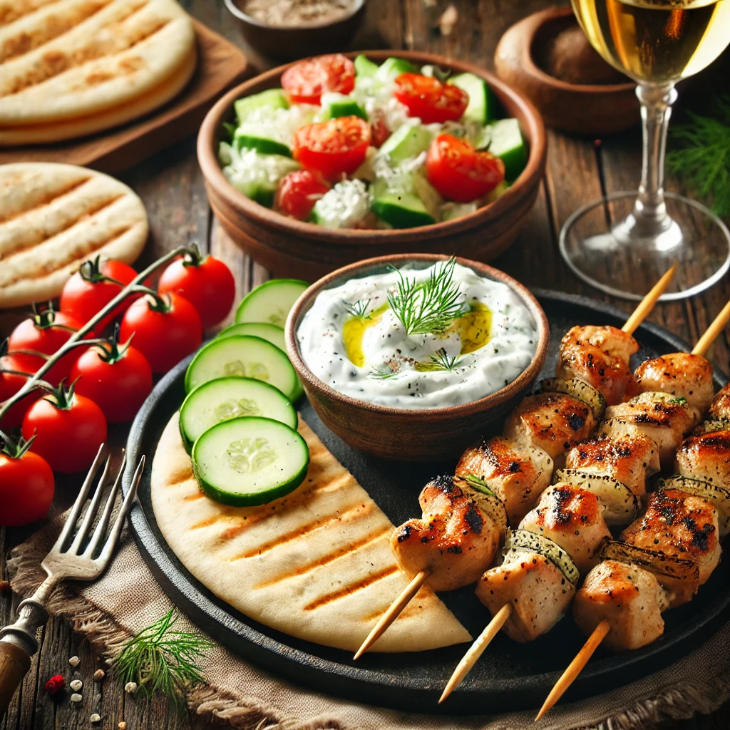 차지키 소스는 요거트, 오이, 마늘, 올리브오일을 섞어 만든 소스예요.