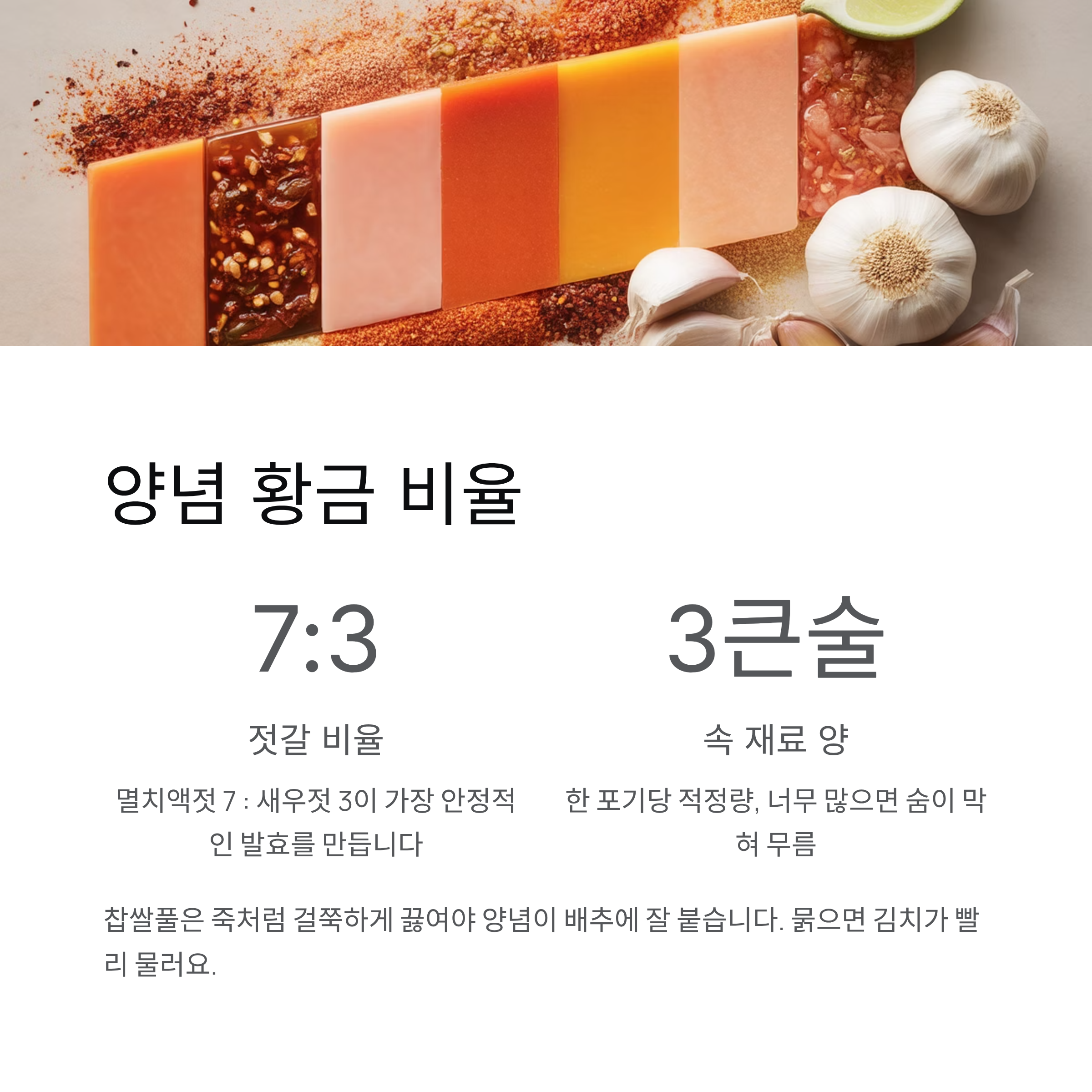 ‘젓갈’의 비율이 무름에 큰 영향을 줍니다.