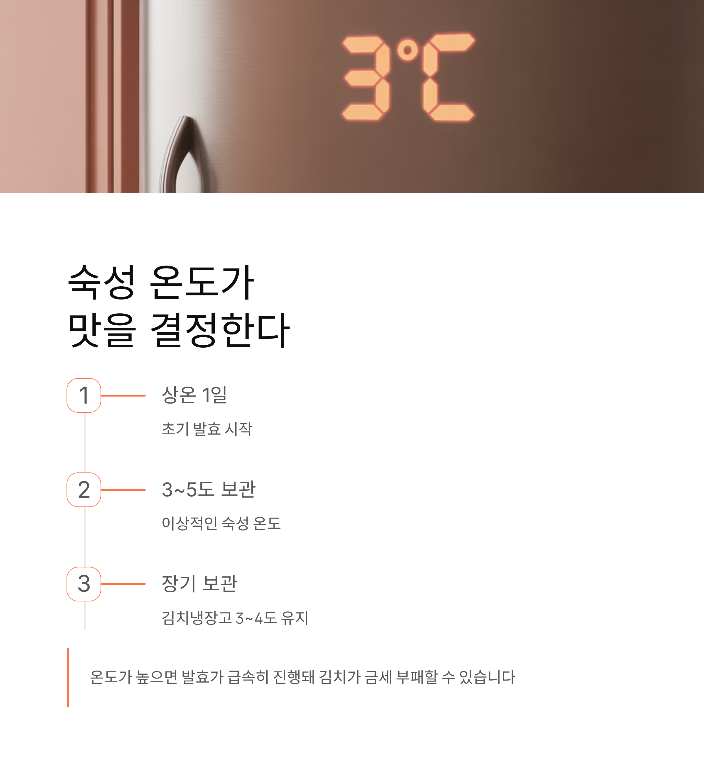 김치의 이상적인 숙성 온도는 3~5도입니다.