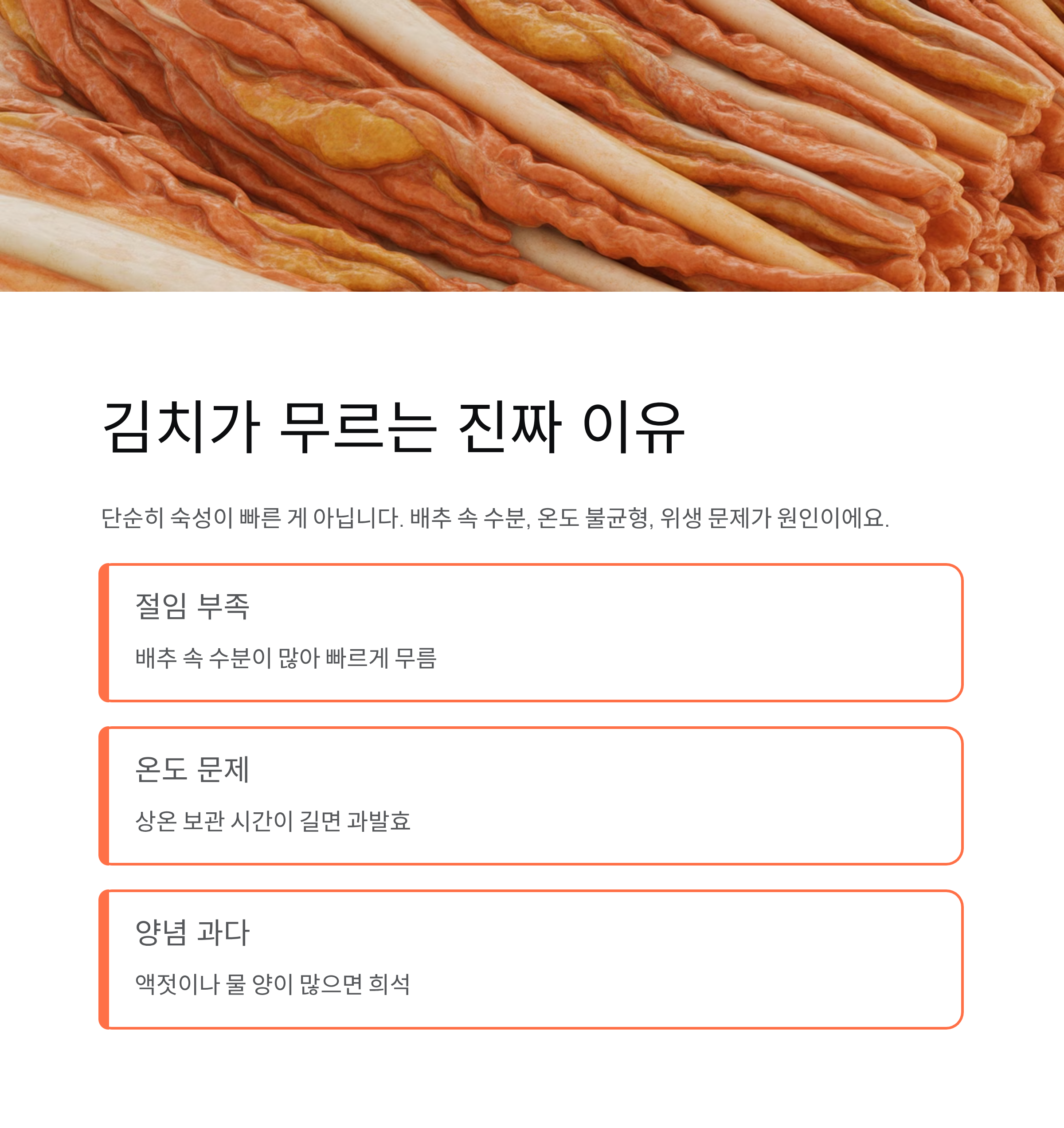 배추 속에 남은 수분과 온도 불균형, 그리고 위생 문제 때문입니다.