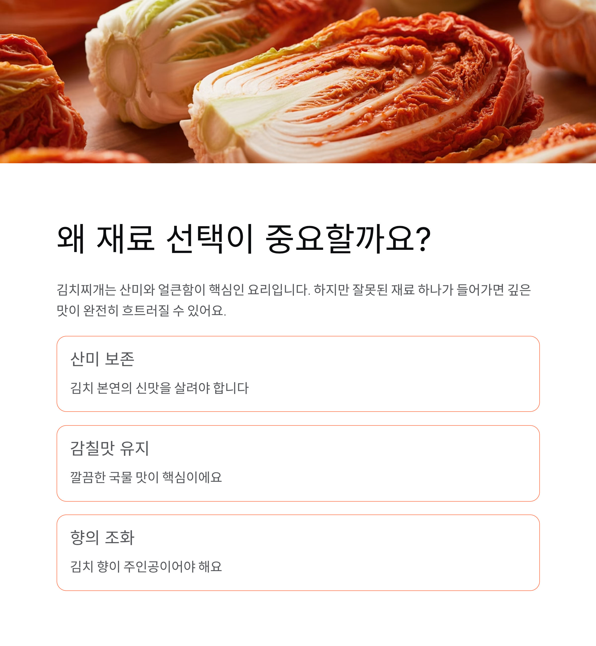 김치찌개는 누구나 편하게 끓이는 메뉴지만, 어떤 재료를 넣느냐에 따라 맛의 결이 완전히 달라지는 민감한 요리이기도 합니다. 특히 김치의 산미와 얼큰함을 해치는 요소가 들어가면 아무리 좋은 재료를 사용해도 깊은 맛이 흐트러질 때가 있어요. 오늘은 김치찌개에 넣으면 조화를 방해할 수 있는 재료들과 그 이유를 일상적인 관점에서 정리해 드립니다. 김치찌개 맛을 안정적으로 유지하고 싶은 분들께 도움이 될 거예요.