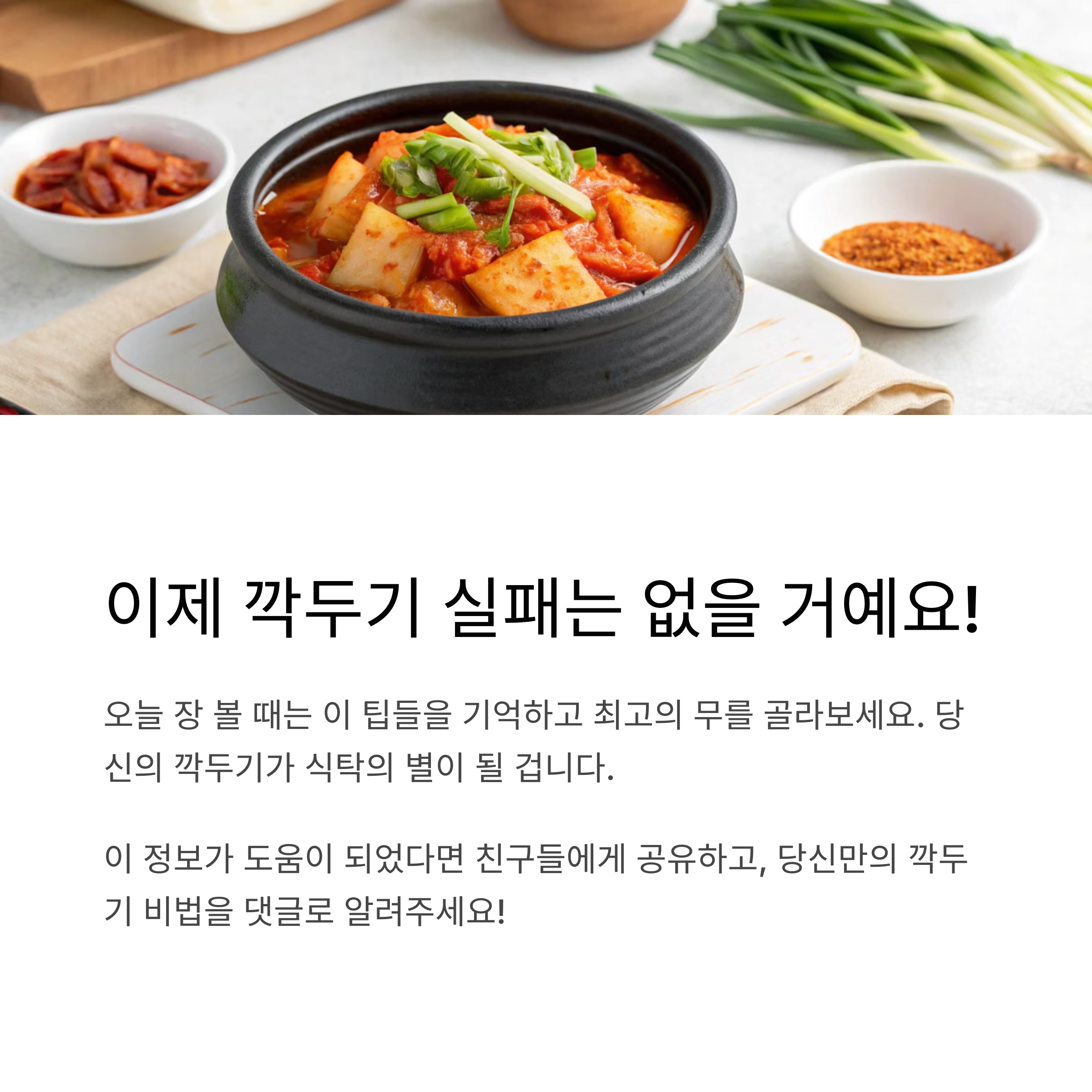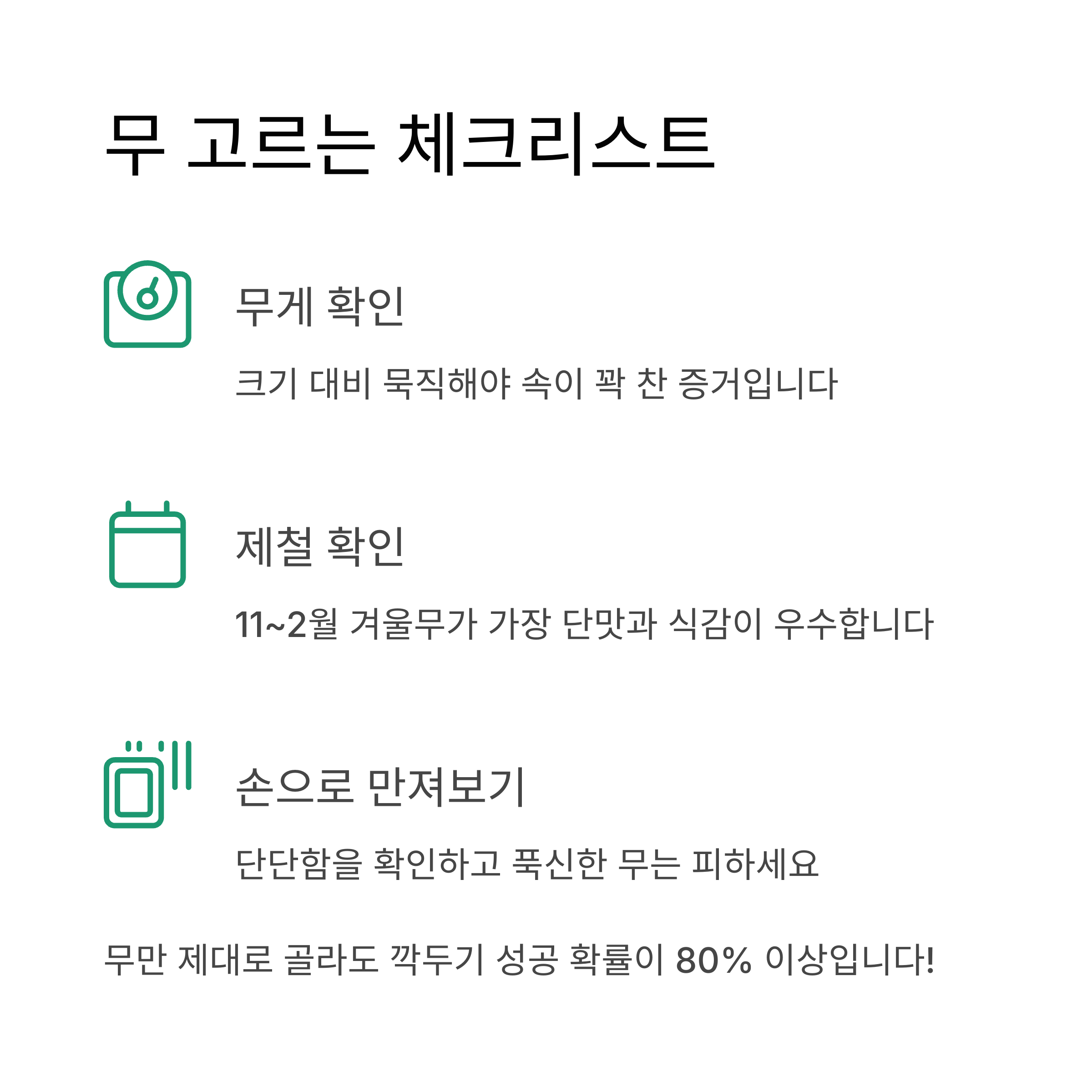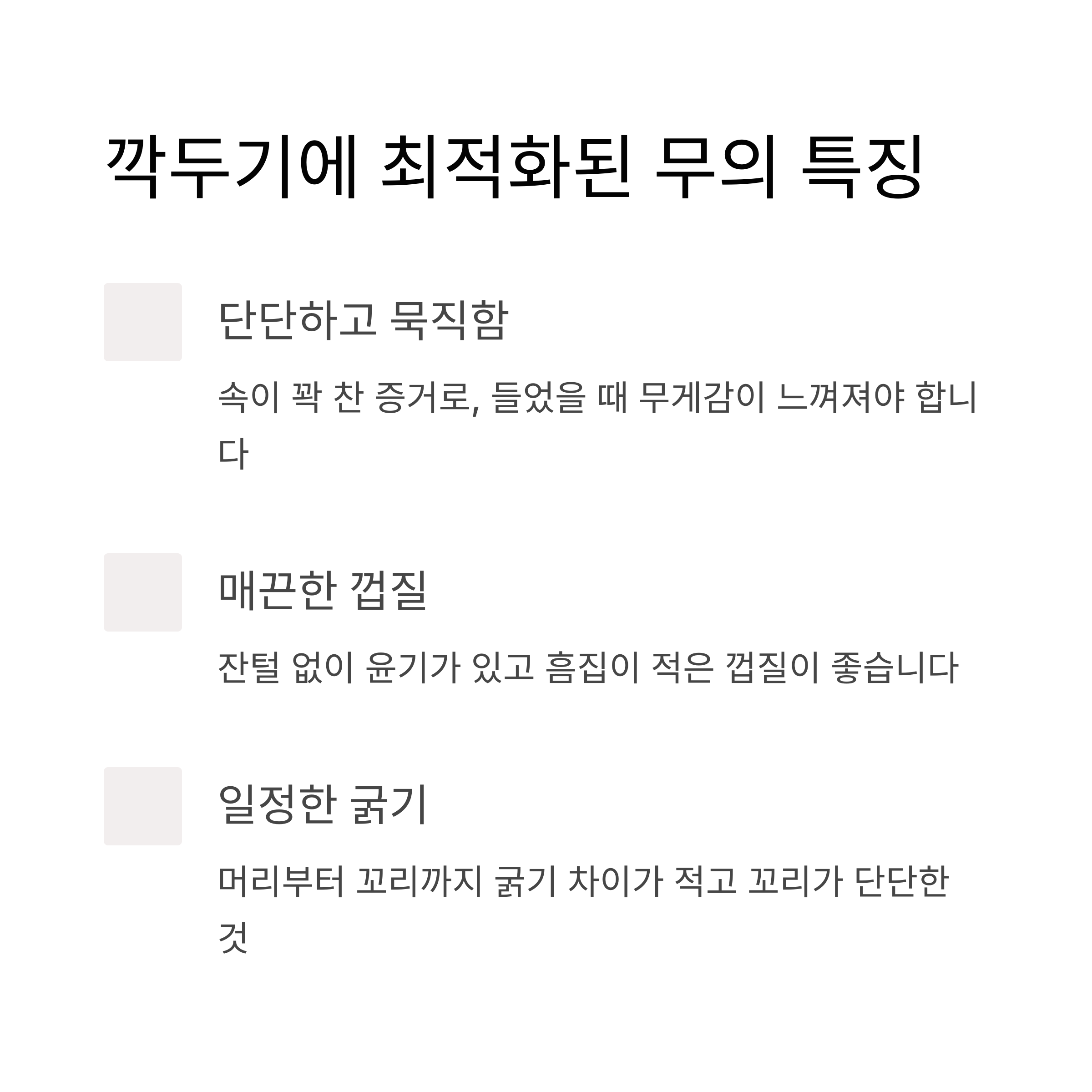 이 글에서는 깍두기용 무를 고를 때 꼭 확인해야 할 기준과