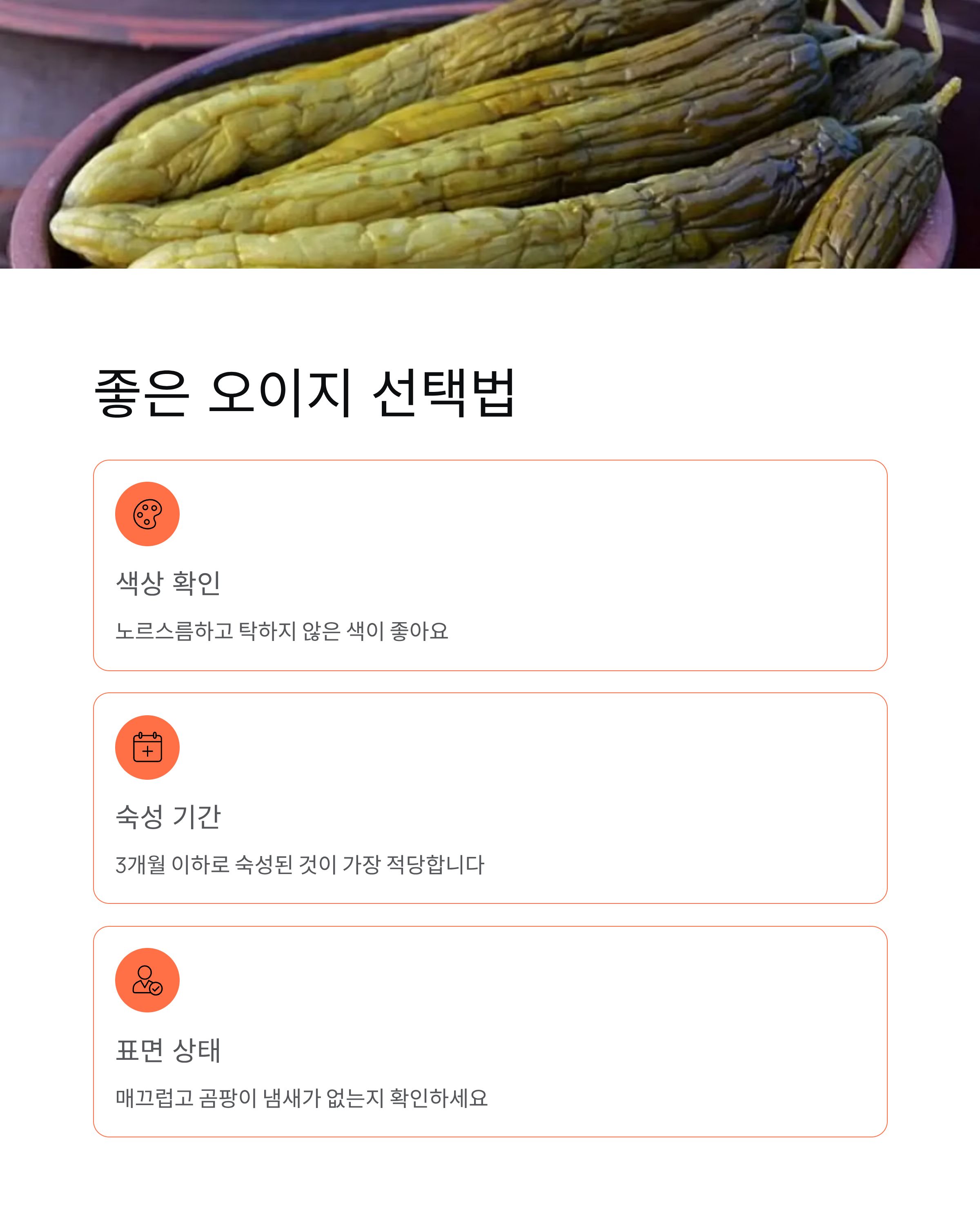 너무 오래 절인 오이지는 짜고 질길 수 있으니, 3개월 이하로 숙성된 것이 가장 적당합니다.