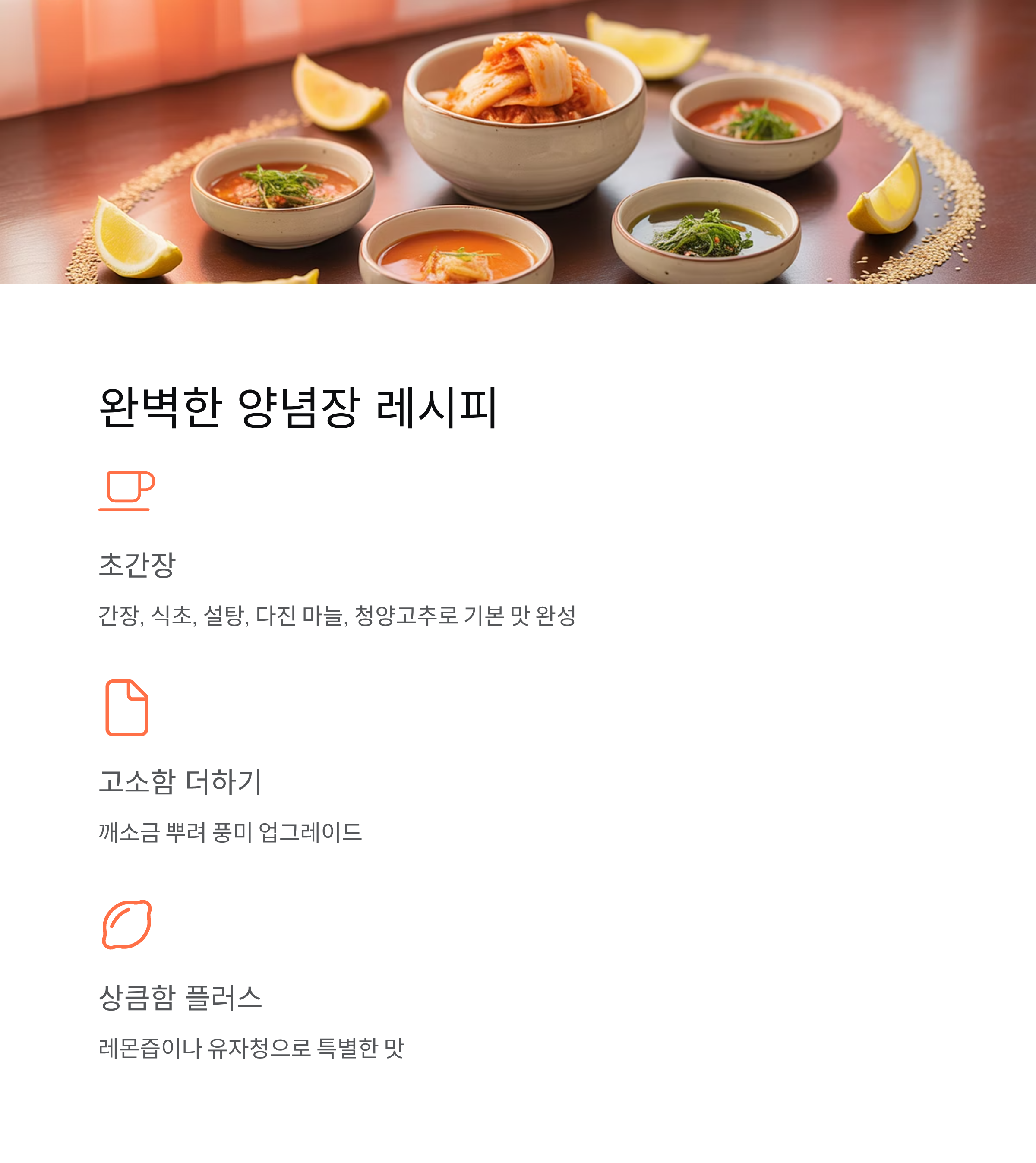 간장, 식초, 설탕, 다진 마늘, 청양고추를 넣어 초간장을 만듭니다. 여기에 깨소금을 뿌리면 고소한 풍미가 더해집니다. 상큼한 맛을 원하신다면 레몬즙이나 유자청을 살짝 넣어도 좋습니다.