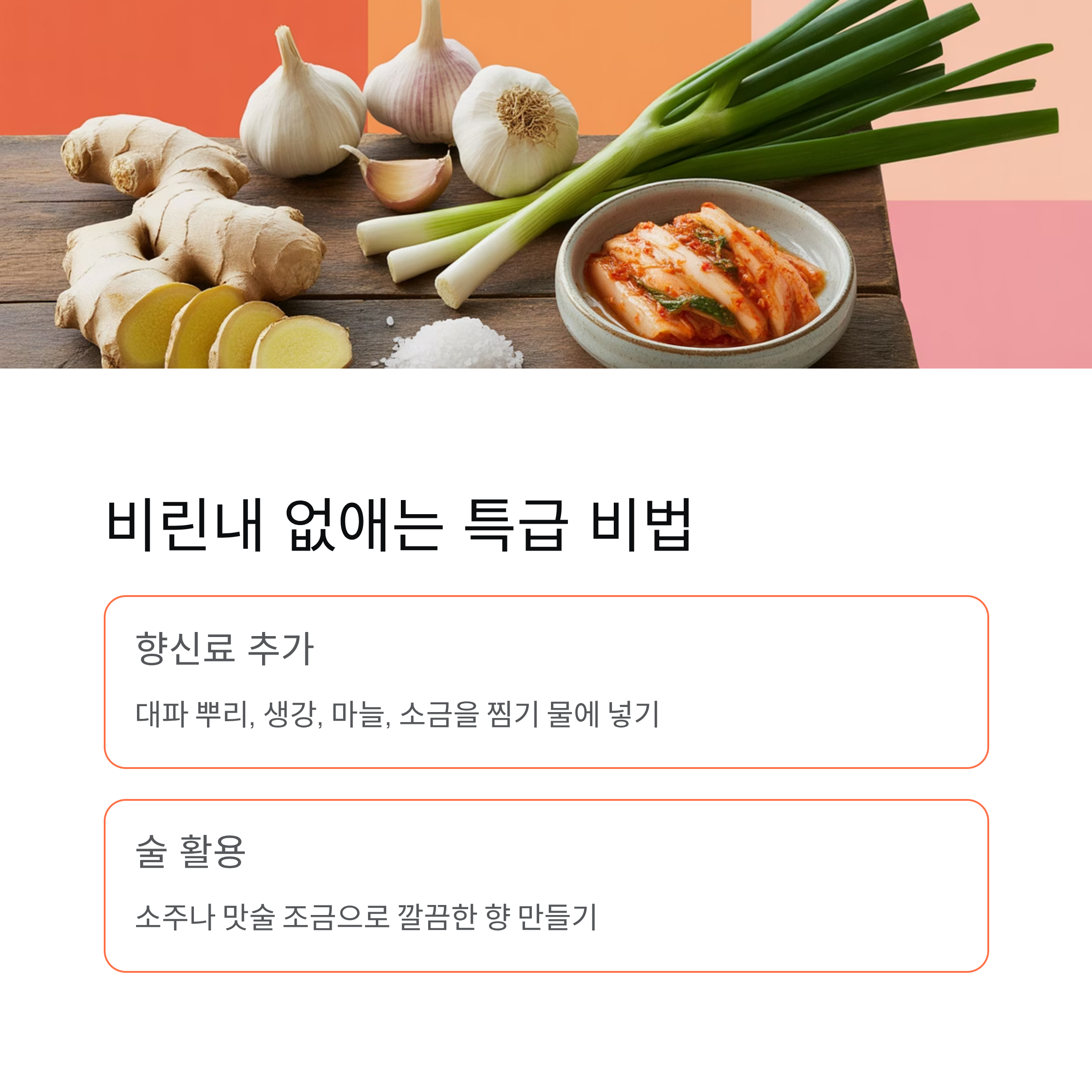 찜기 물에 대파 뿌리, 생강, 마늘, 소금을 넣으면 비린내가 줄어듭니다. 소주나 맛술을 조금 넣어도 깔끔한 향이 나지요. 다 쪄낸 후 초간장을 곁들이면 담백한 맛이 살아납니다.
