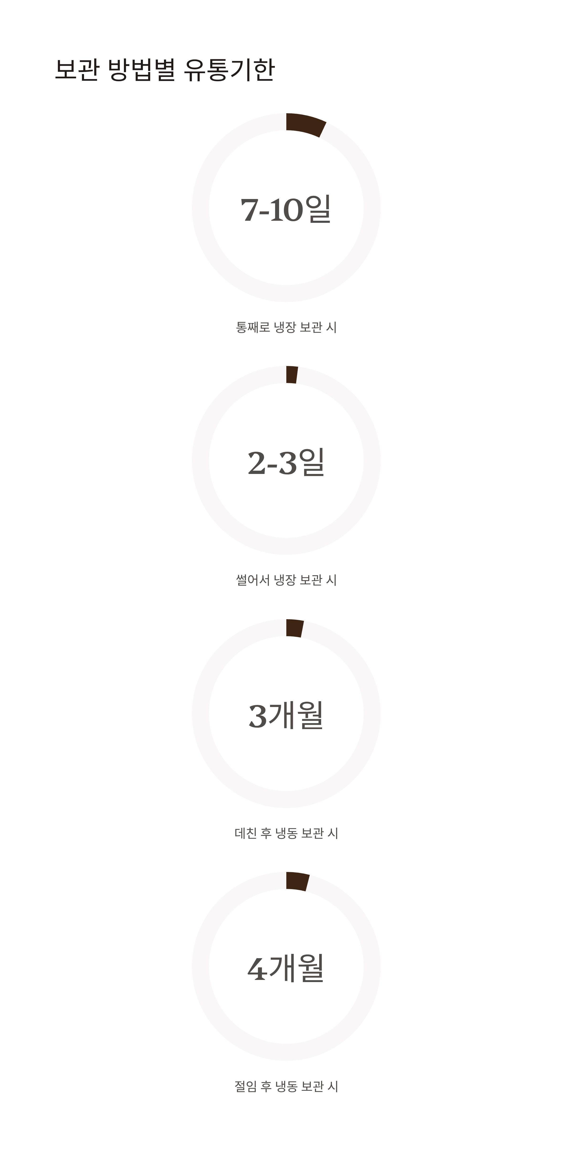 - 절단 후: 자른 면에 랩을 씌우고 키친타월로 감싼 뒤 밀폐 용기에 넣어 2~3일 이내 사용