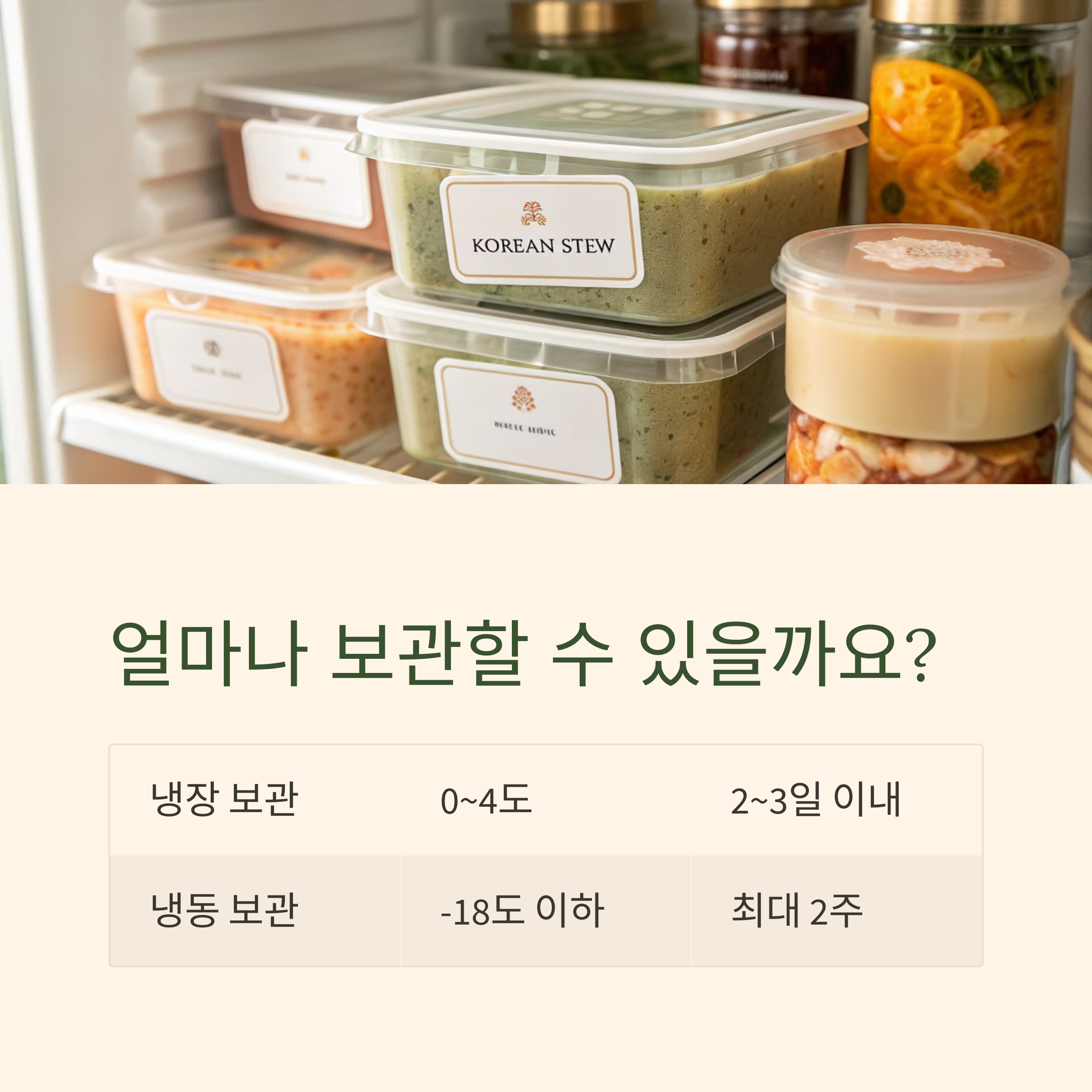 냉장 보관은 3일, 냉동 보관은 최대 2주가 안전 기준입니다