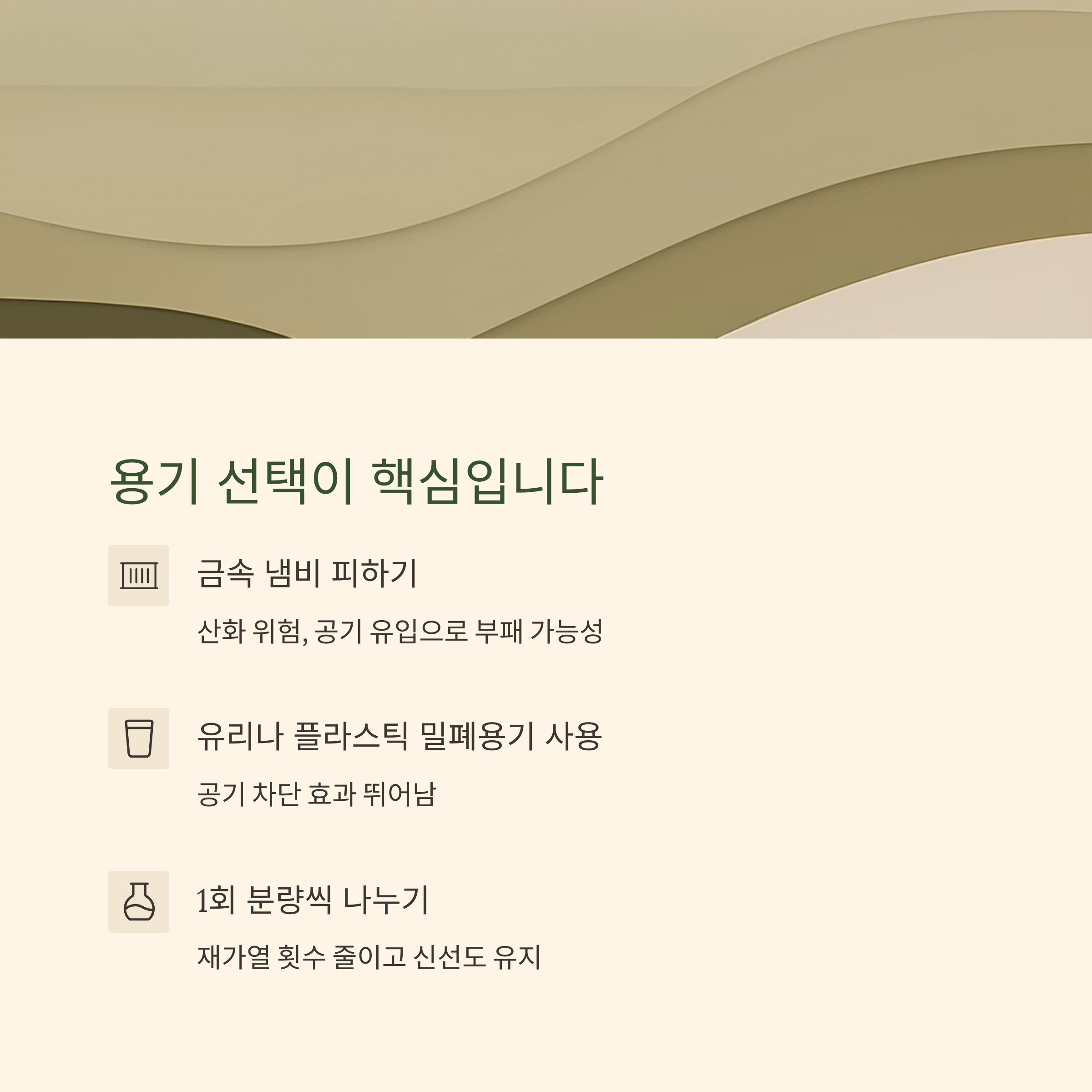 밀폐 용기에 담아 공기 차단이 가장 중요합니다