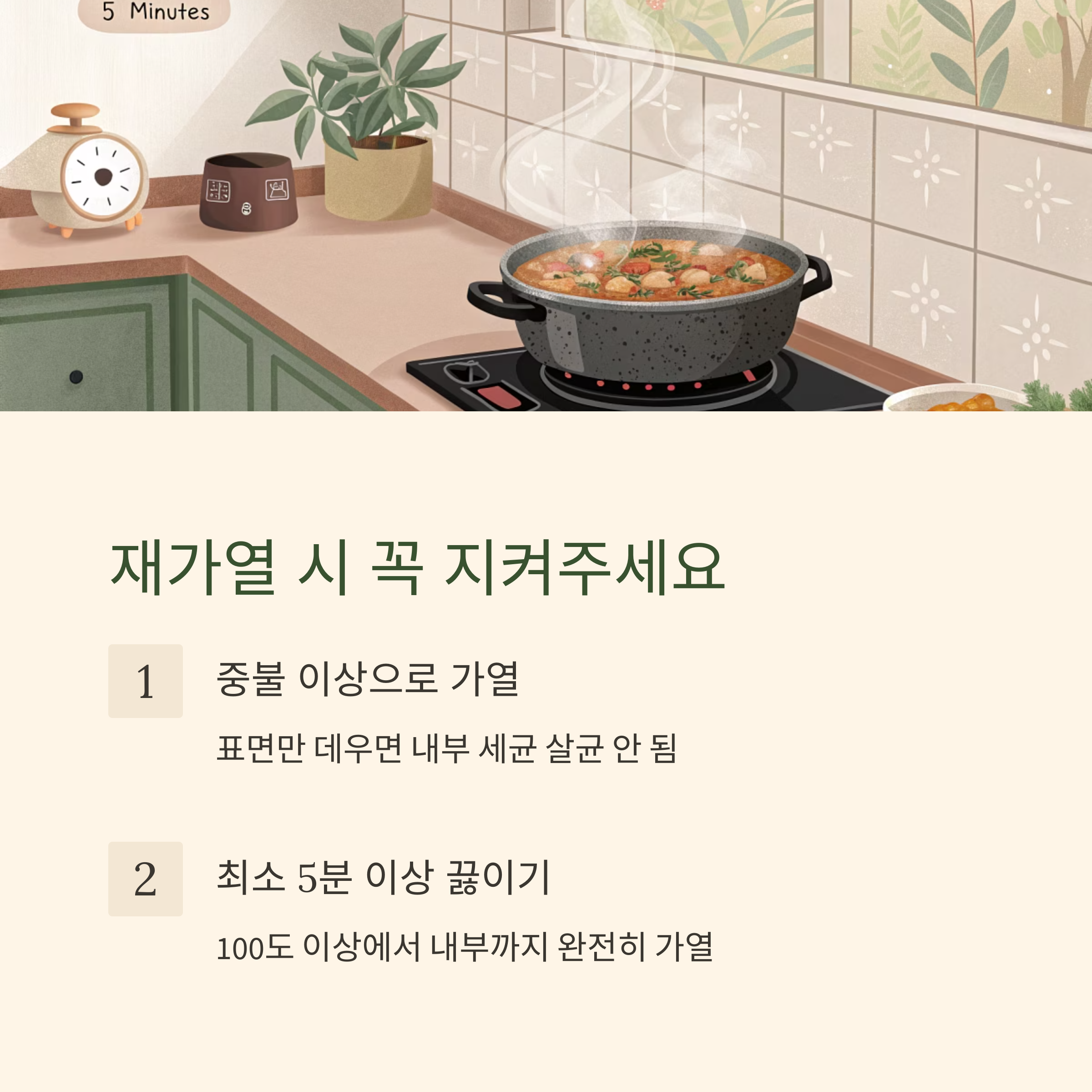 재가열할 땐 100도 이상에서 끓여야 안전합니다