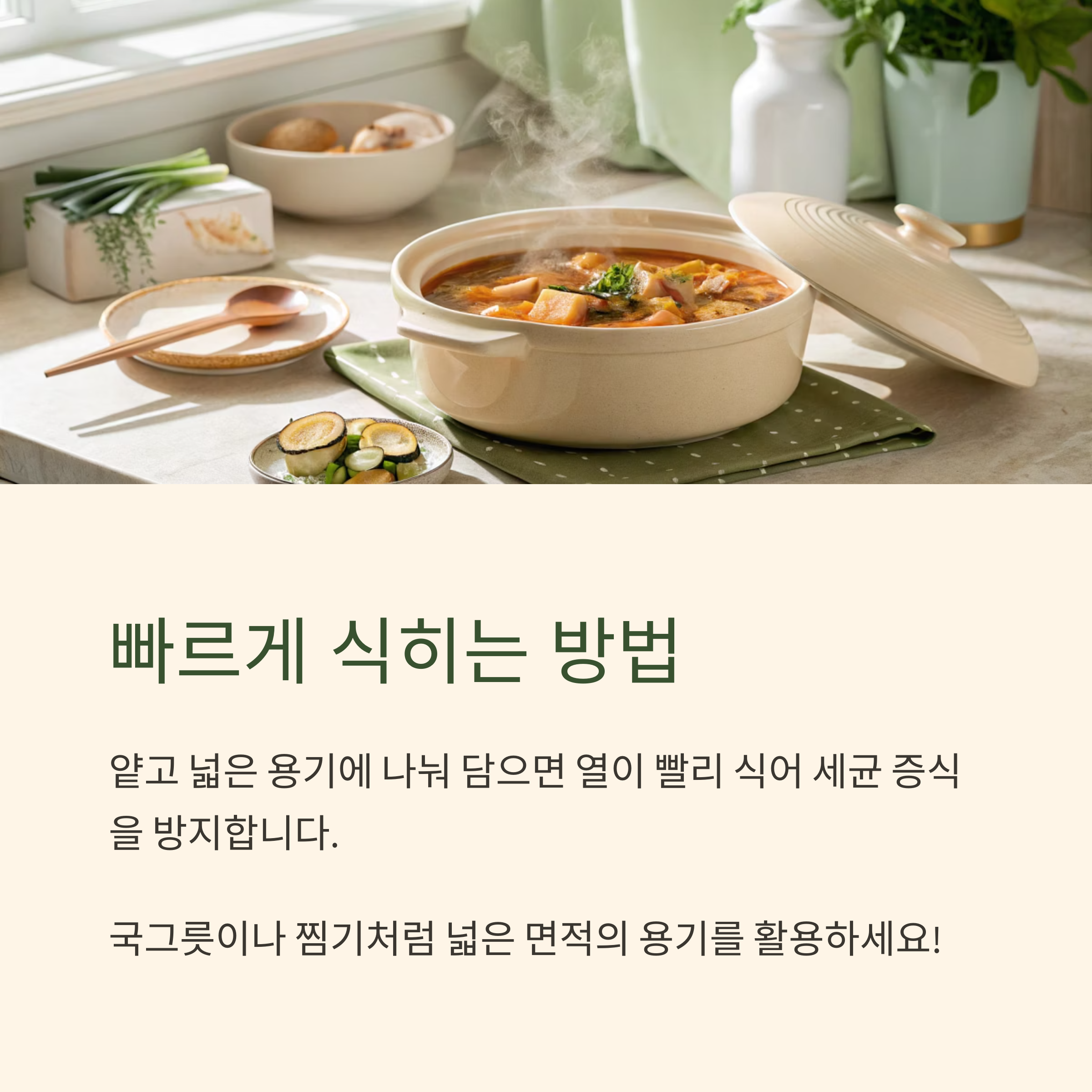 뜨거운 찌개를 식힐 땐 '얕고 넓은 용기'가 효과적입니다