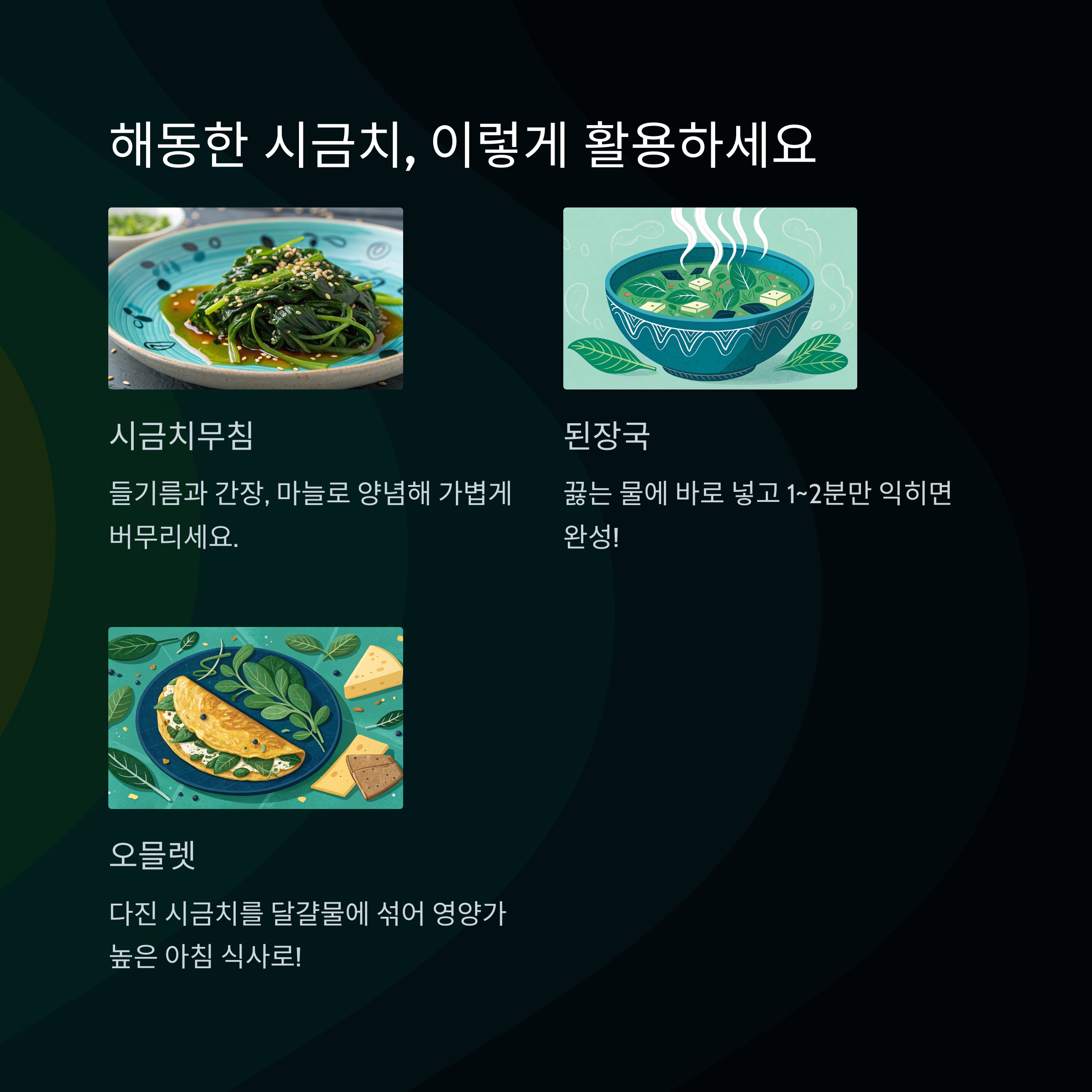 해동 후 시금치는 다양한 요리에 간편하게 활용할 수 있습니다.