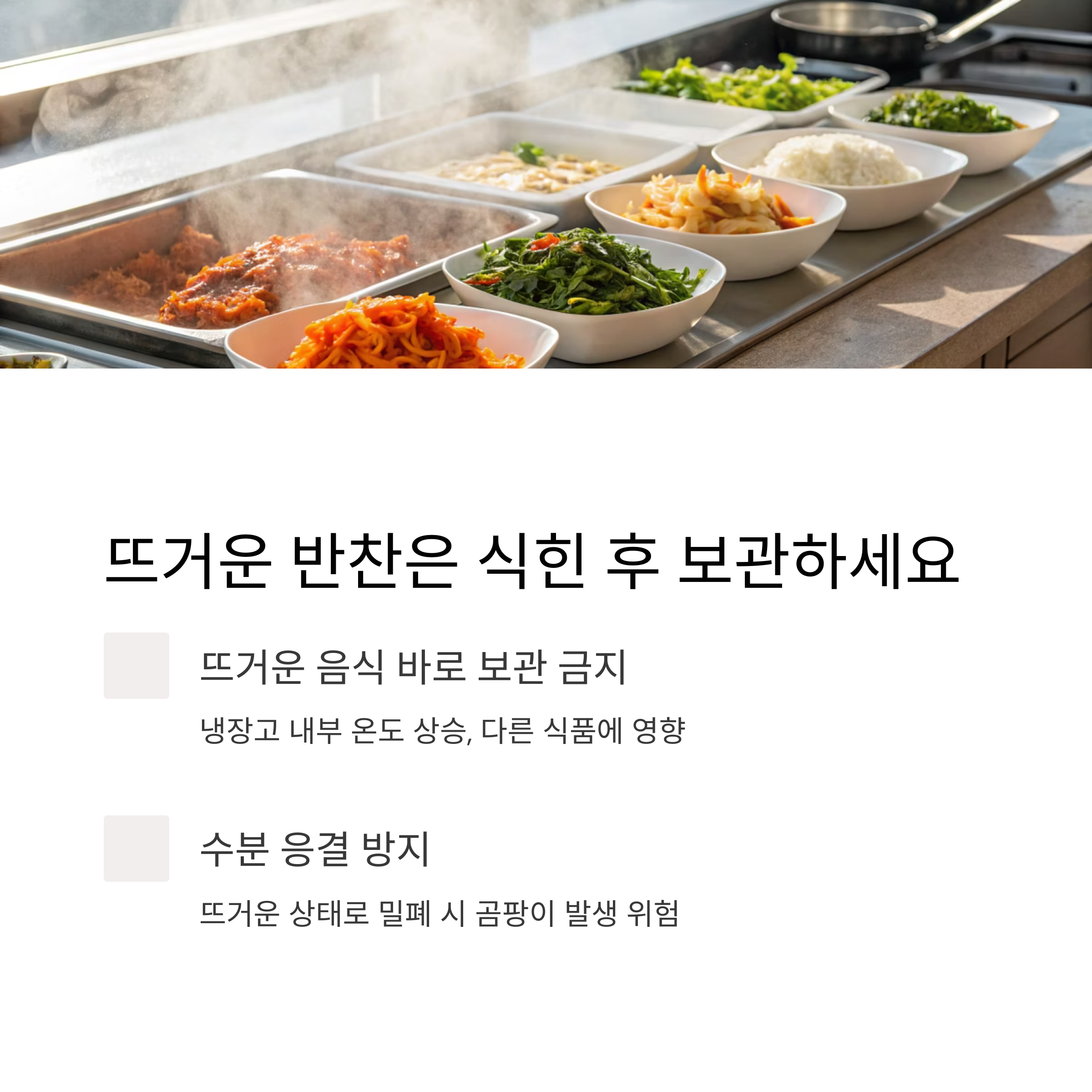 첫 번째, 뜨거운 반찬은 식힌 후 보관하세요