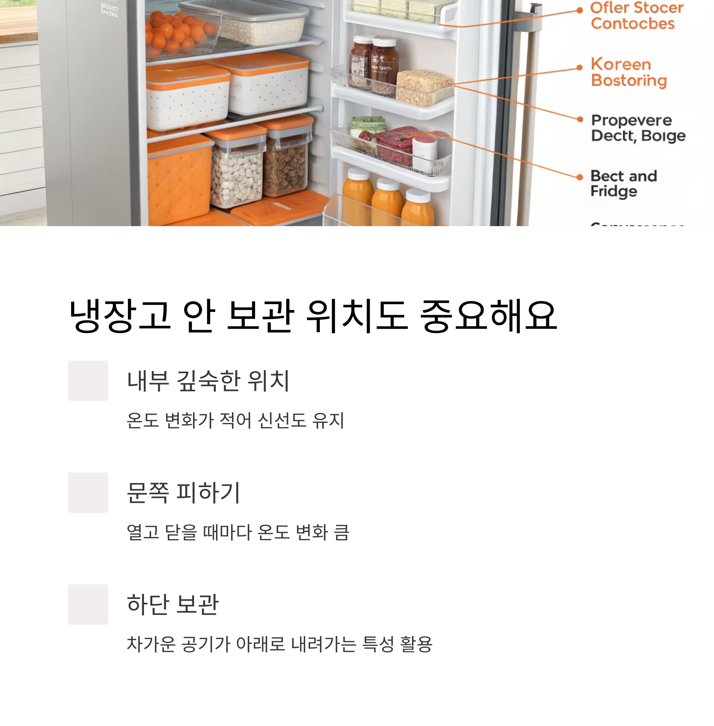 다섯 번째, 냉장고 안 보관 위치도 체크하세요