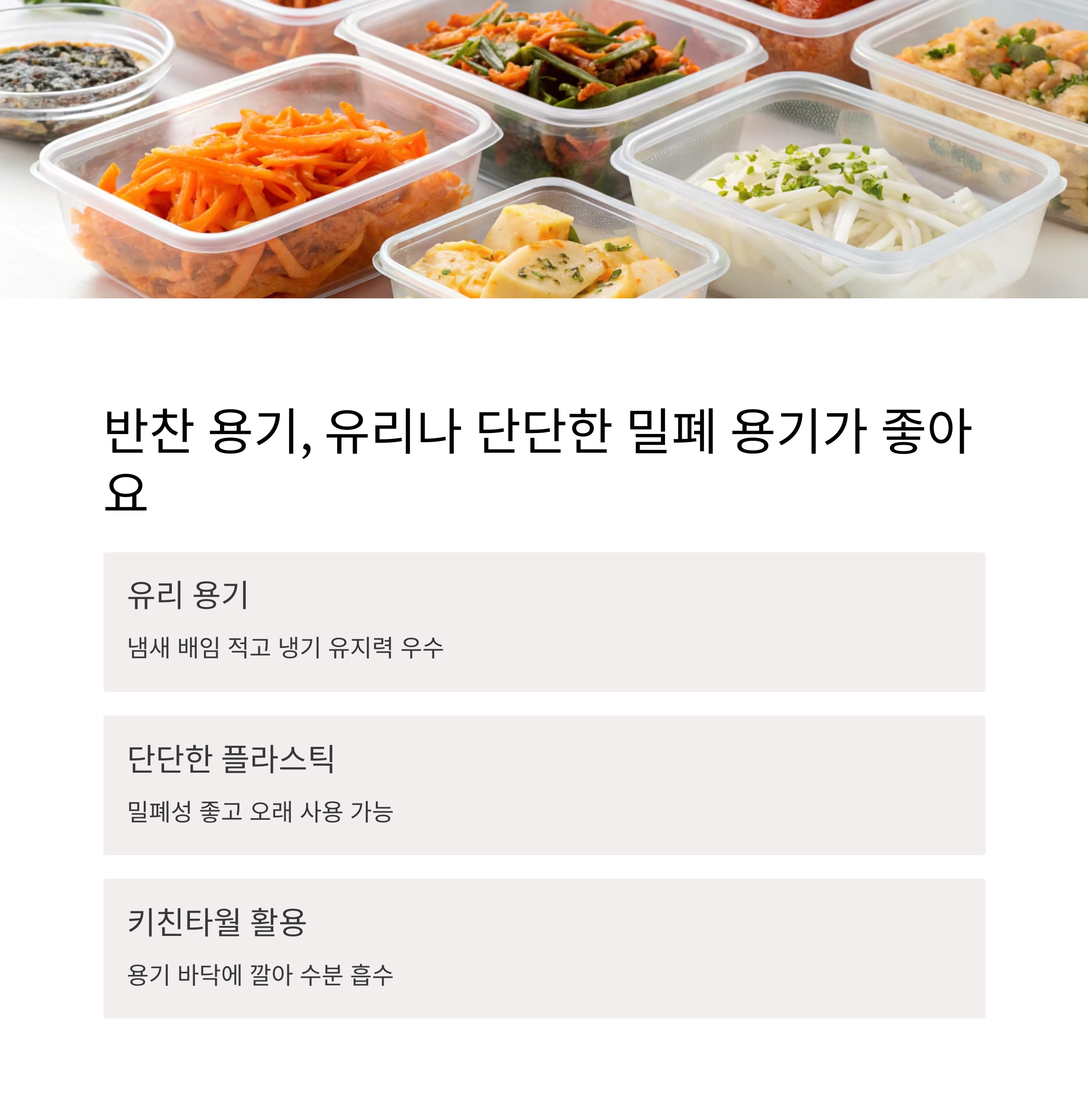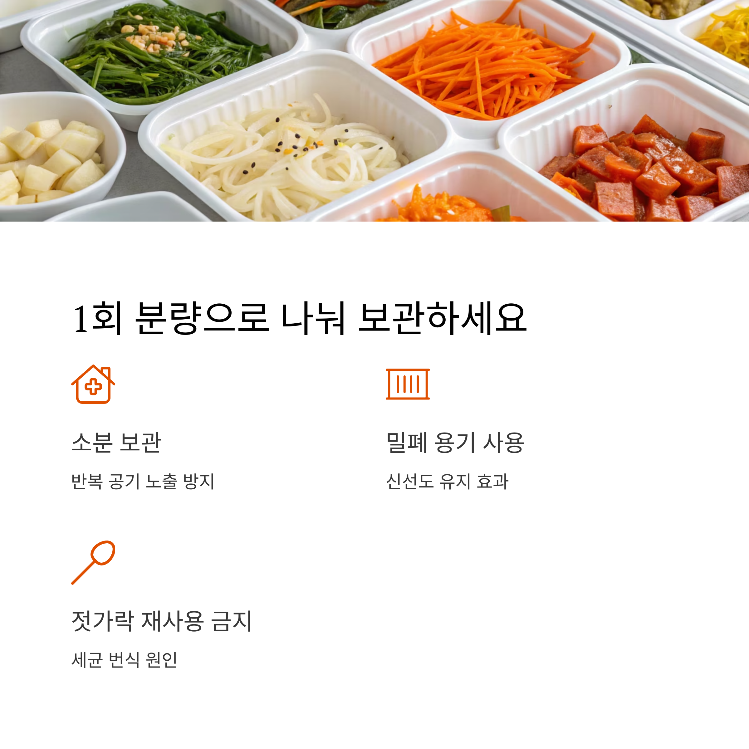매일 새 반찬 만들기 힘들다면, 오래 가는 보관이 정답입니다