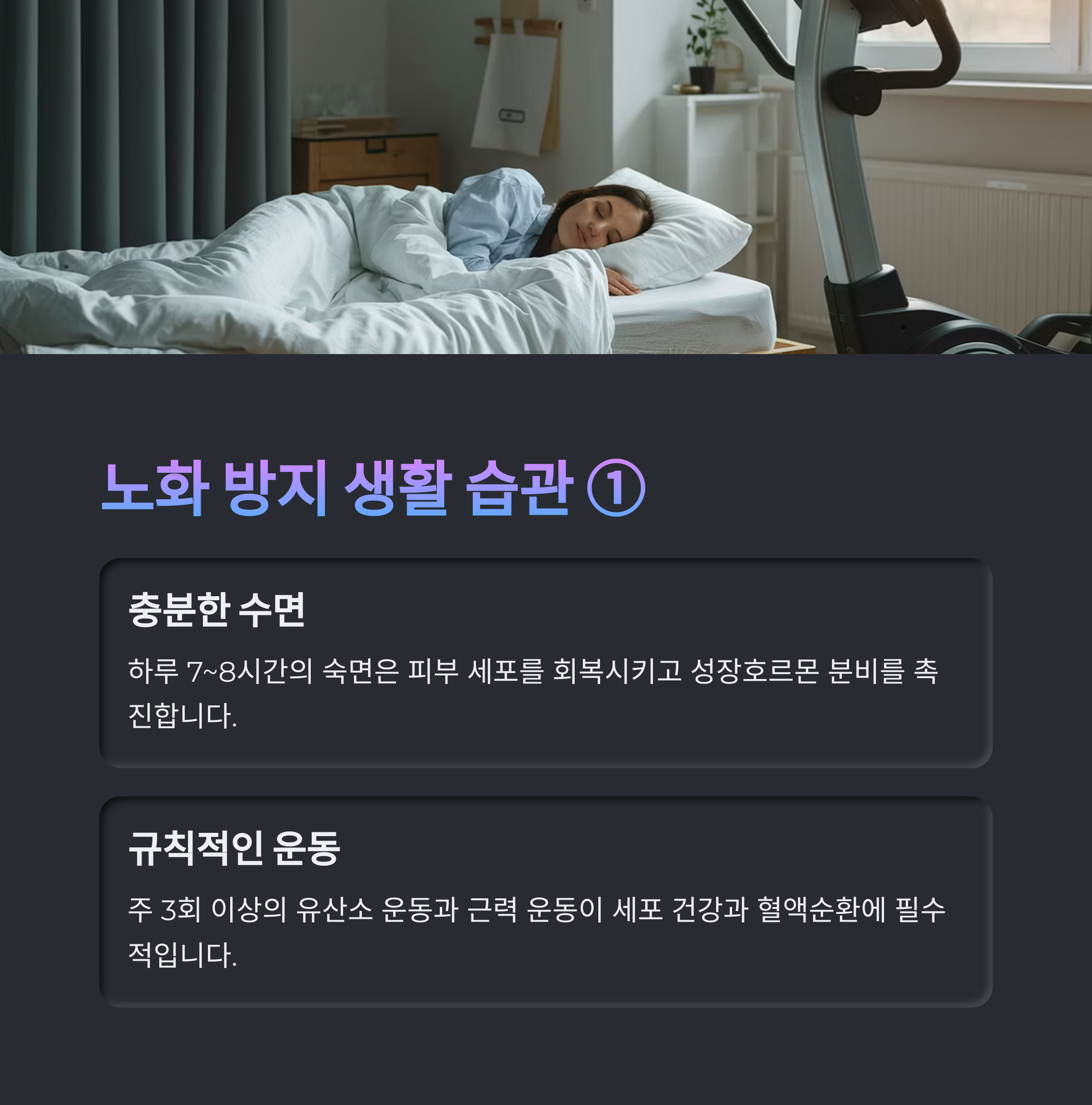 | 비타민 C·E, 폴리페놀, 라이코펜 섭취 | 하루 30분, 주 3~5회 실천 | 밤 11시 전 취침, 7시간 수면 유지 |